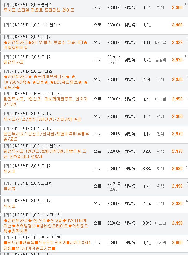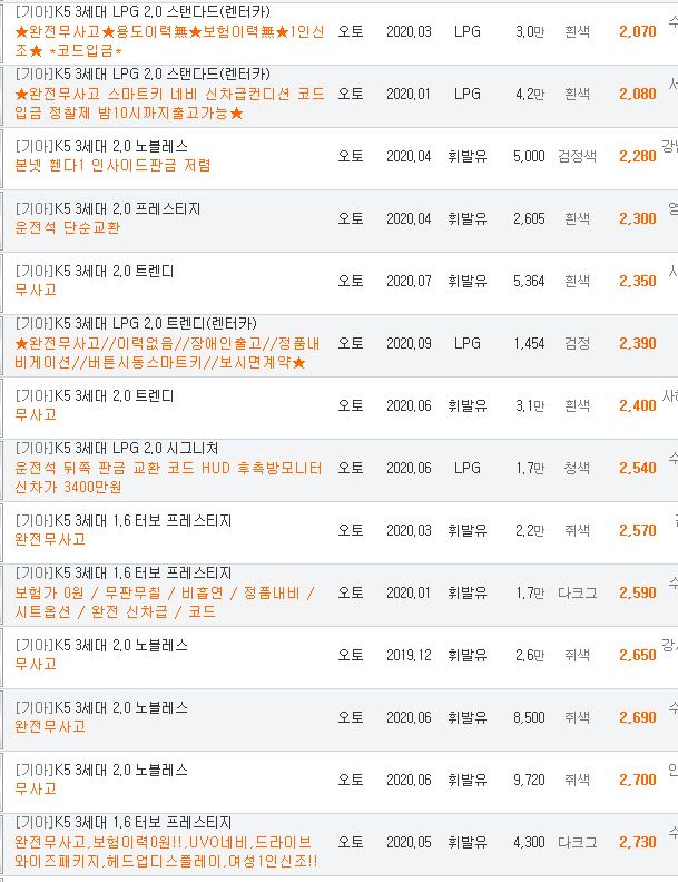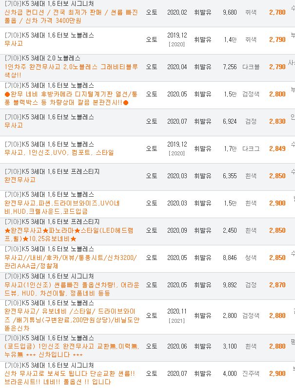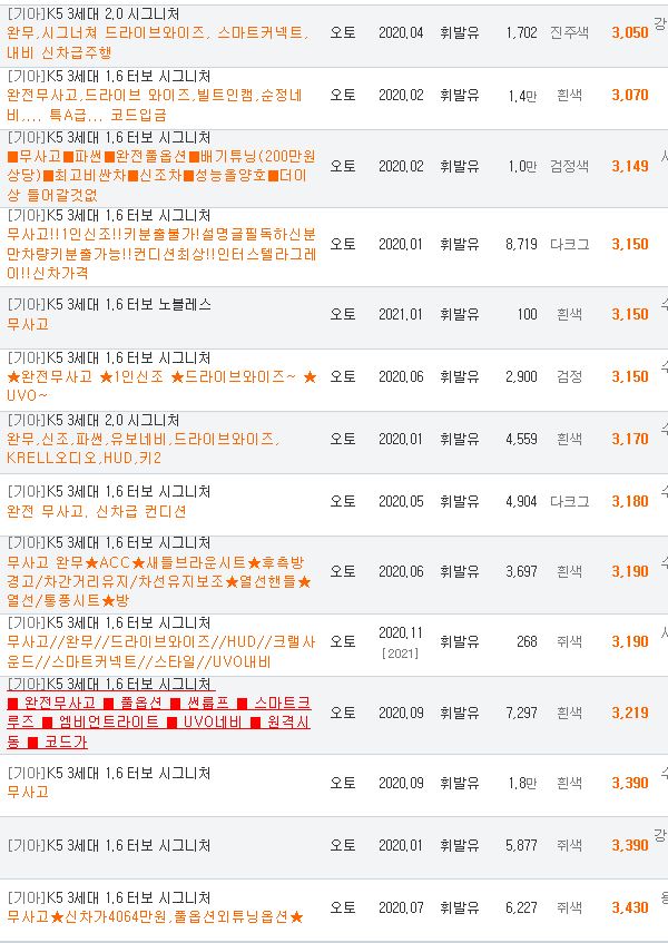 그럼 본격적으로 현재 중고차사이트에서 판매되고 있는 3세대 K5의 중고차가격을 알려드리겠습니다.