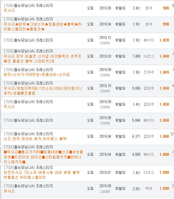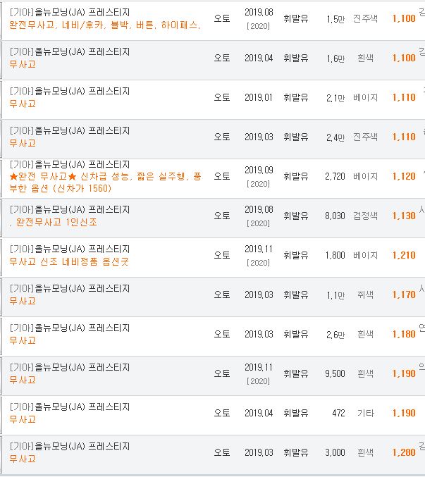 그럼 본격적으로 2019년식 올뉴모닝 JA의 프레스티지 트림 중고차가격을 알려드리겠습니다.