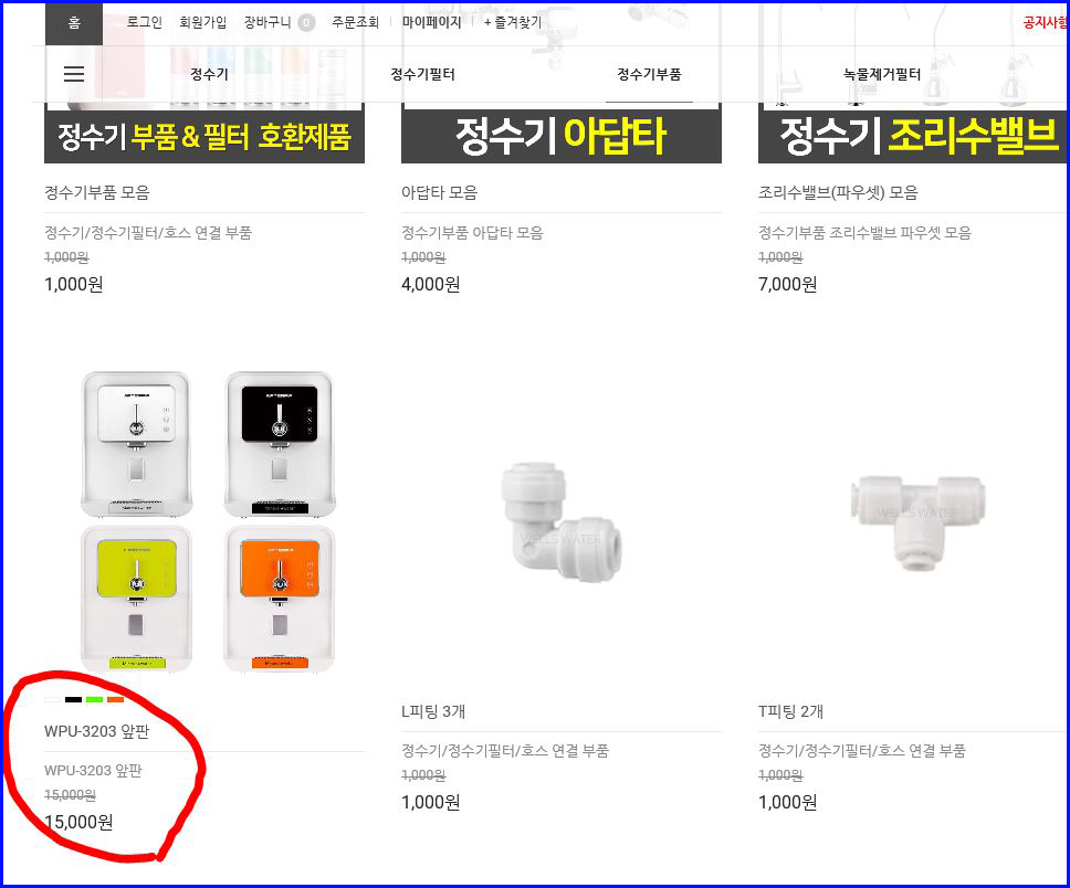 위에 메뉴에 보니 정수기부품 메뉴도 있네요.