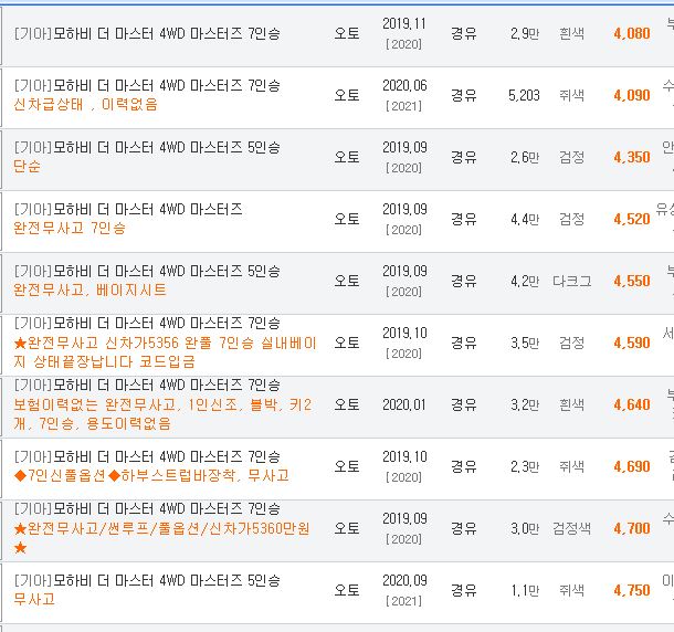 제가 보는 중고차매매사이트에서 가장 낮은 가격은 2019년 11월식의 4080만원에 판매되고 있는 매물이네요.