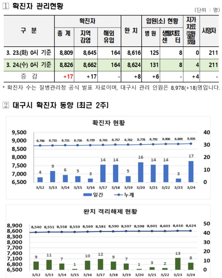 24일 0시기준으로 8826명이 확진 되었으며 지역감역 8662명, 해외유입 164명이 되겠습니다.