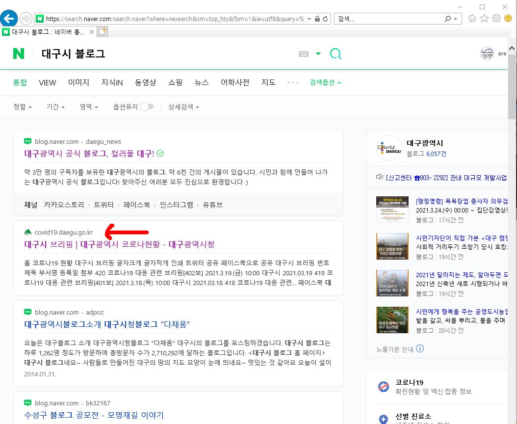 "대구시 브리핑" 또는 "대구시 블로그" 라고 검색을 하면 위와 같이
