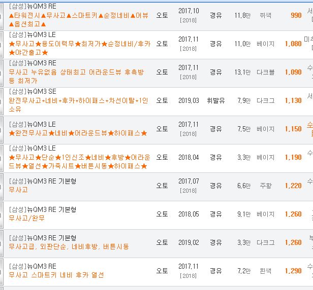 오늘은 르노삼성의 뉴QM3 중고차가격시세표를 알려드렸습니다.