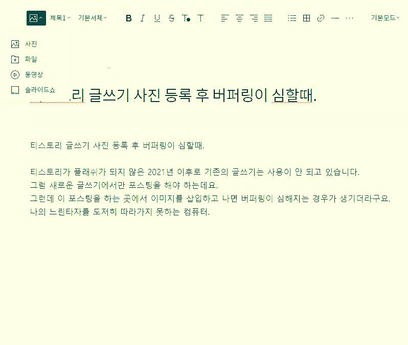 그래서 요즘은 티스토리 글쓰기를 하다가 버퍼링이 심해지면 글쓰기 모드를 변경해 본답니다.