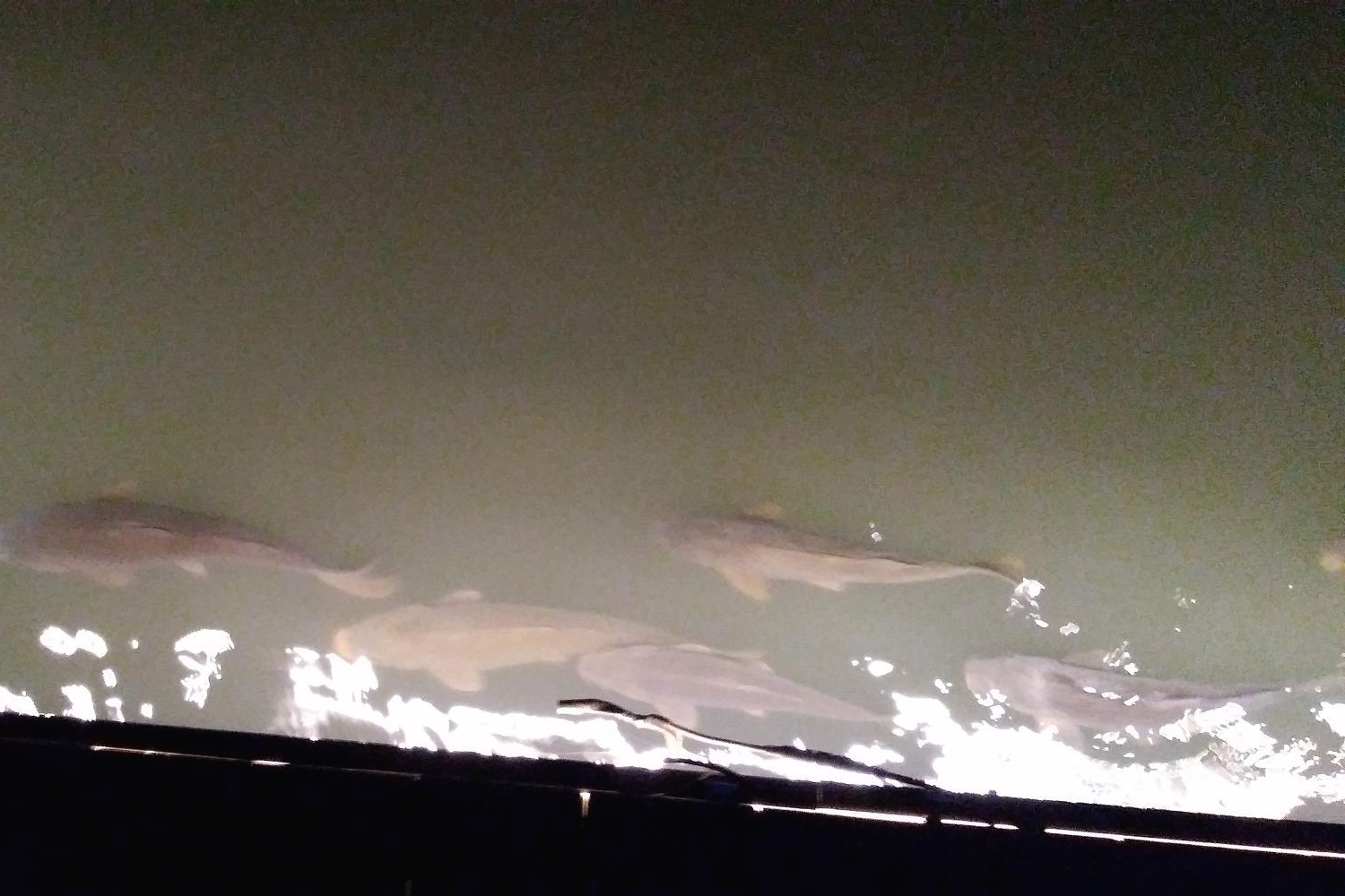 데크 밑으로 유유히 다니고 있는 잉어때입니다.