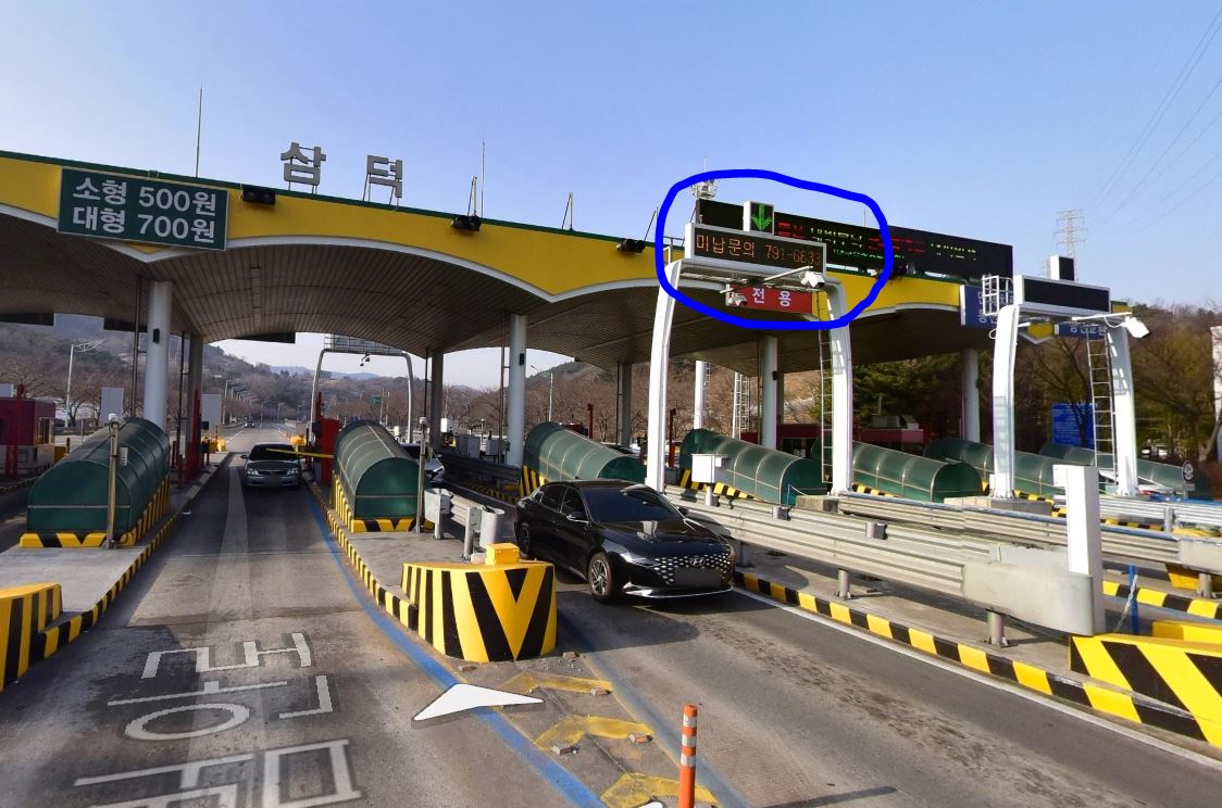 바로 수성구쪽으로 빠질때 요금을 납부하는 삼덕요금소와 동구쪽으로 빠질때 요금을 내는 고모요금소가 있습니다.