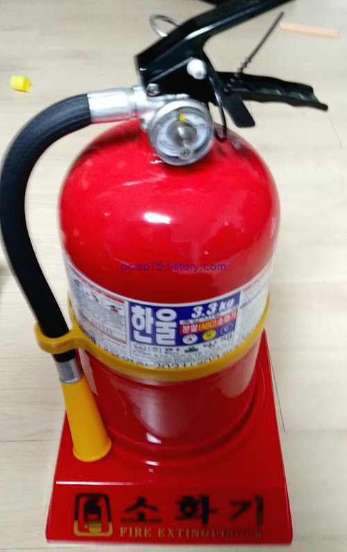 그래서 만약을 대비하여 소화기를 하나 사서 앞 거실에 비치를 하였습니다.
