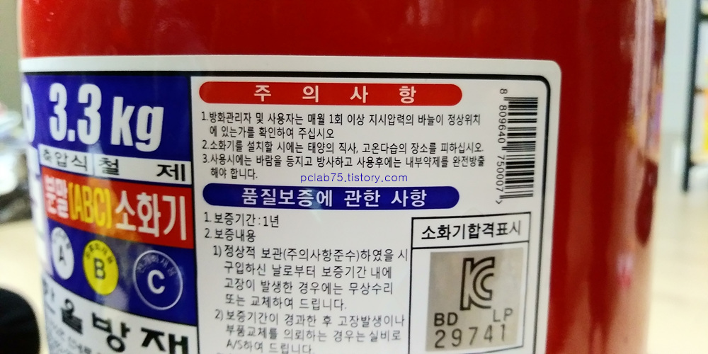 만약을 대비한 것이므로 가정에 소화기 하나는 있어야겠죠.