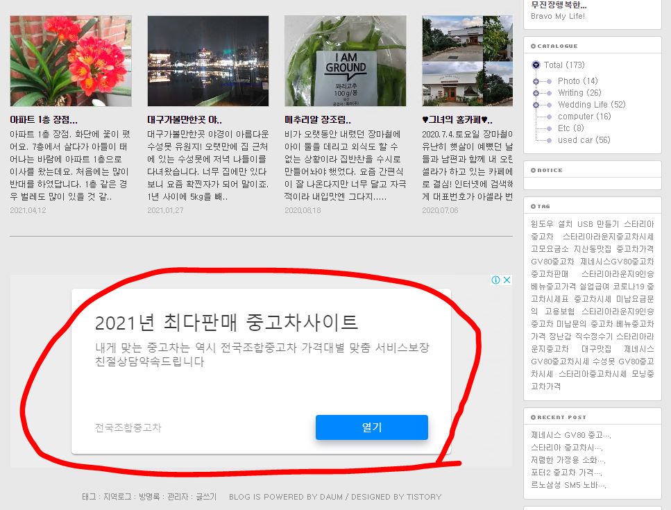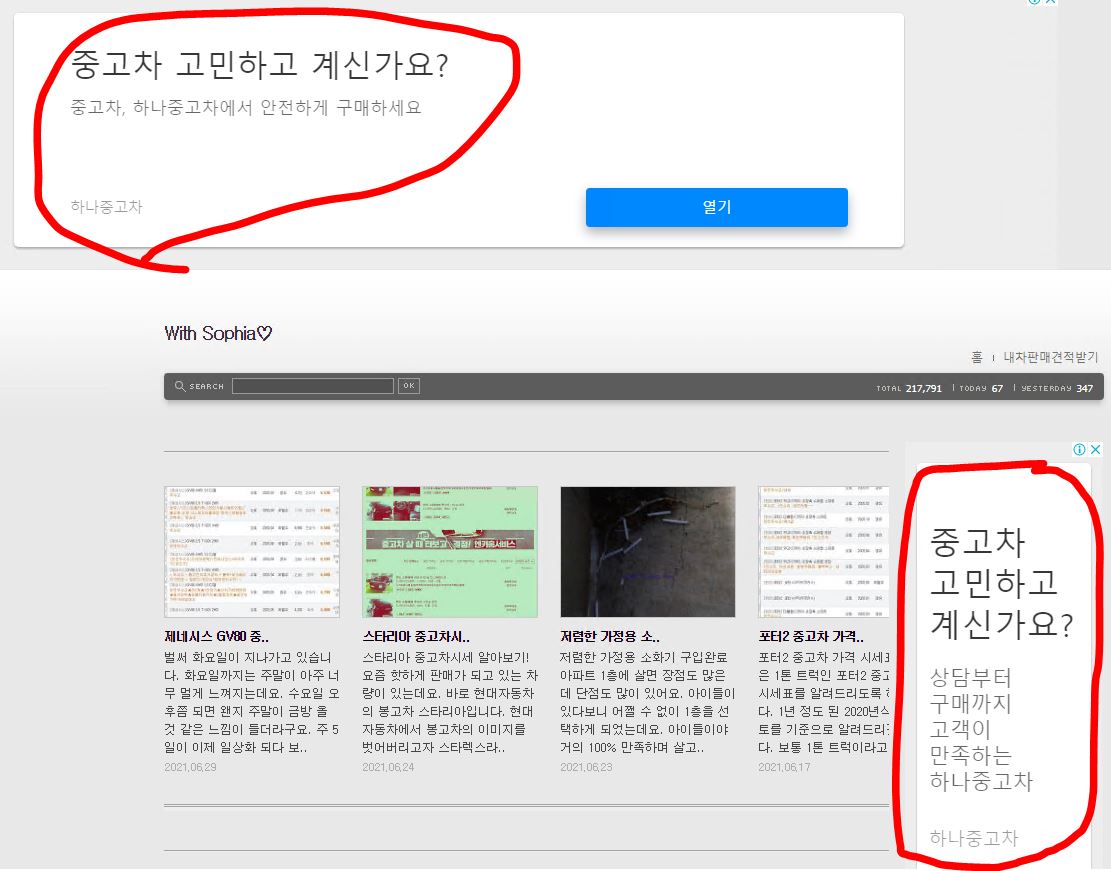 그래서 저도 제 사이트에 뜨는 중고차사이트들이 어떤 사이트인지 클릭을 해 보고 싶지만 ㅠ_ㅠ