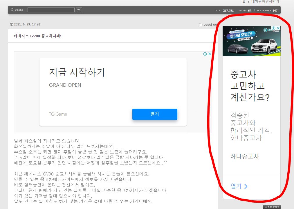애드센스에서 나오는 중고차사이트들의 광고들 같은 경우