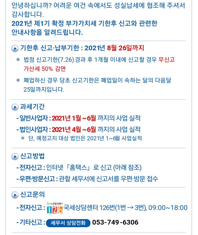 세무서에서 부가세 기한 후 신고를 하라고 문자가 왔습니다.