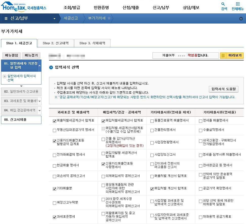 홈택스에 자동으로 자료들이 등록되어 나타나거든요.