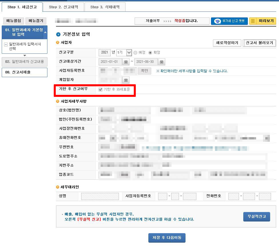 저는 기한 후 신고여부에 체크가 되어 있네요.