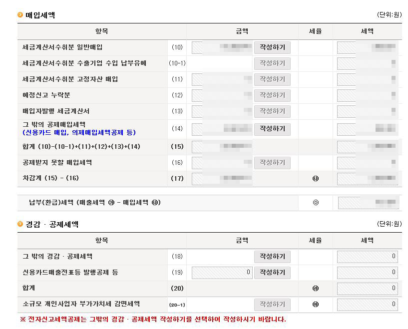과세표준 및 매출세액에는 저희 통장으로 들어온 것들을 기입하면 됩니다.