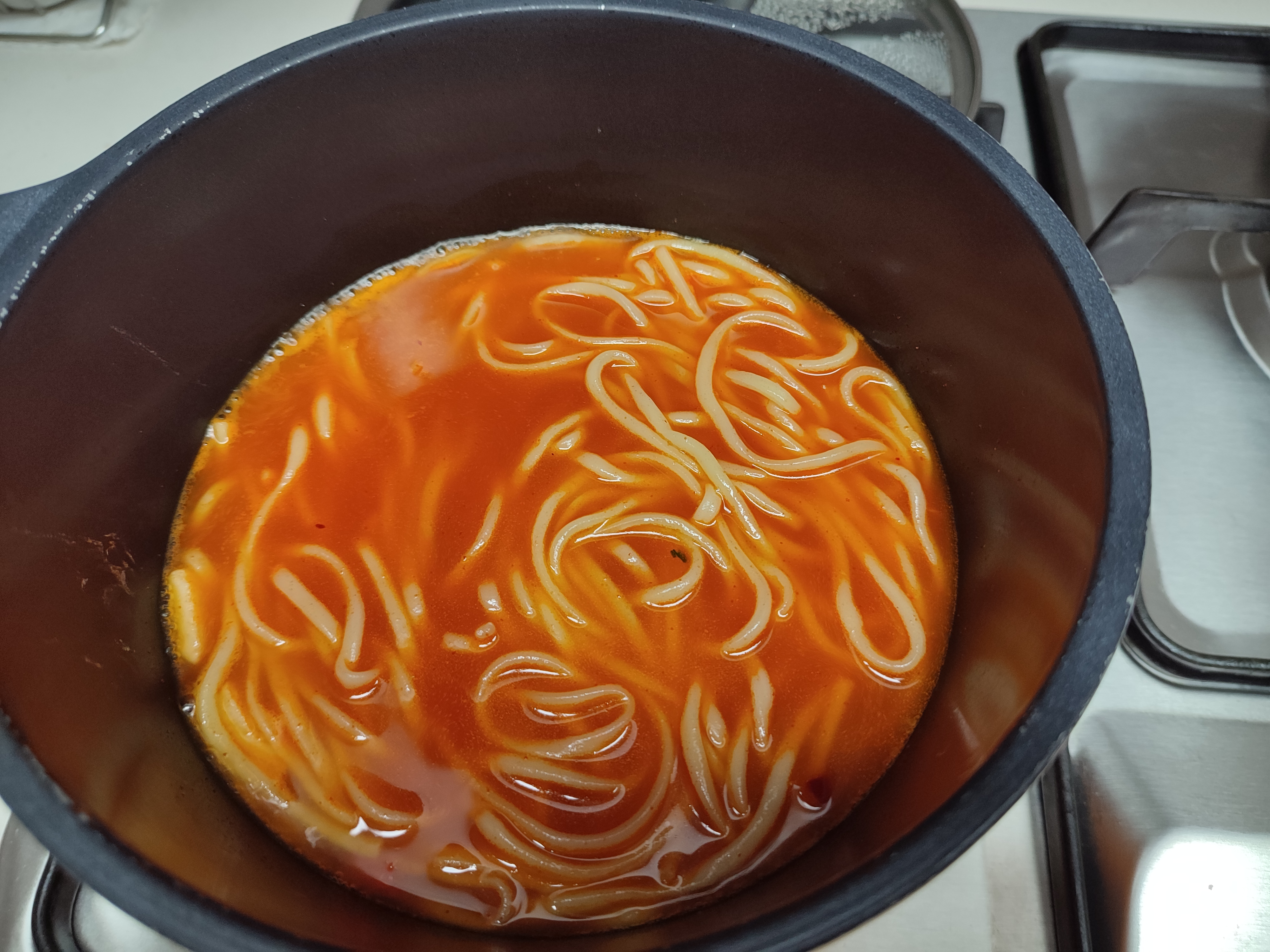저는 국물을 좋아하므로 라면과 비슷하게 물을 넣고 조리하였습니다.
