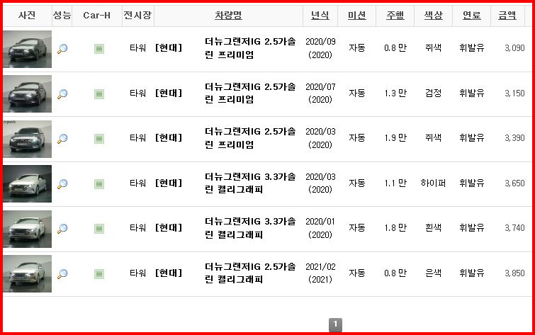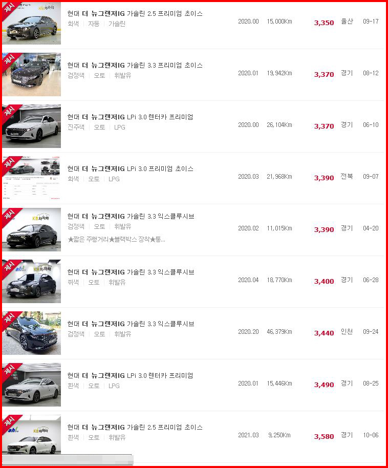 그럼 또다른 중고차매매사이트에서 매매 되고 있는 그랜저 리스트를 보도록 하겠습니다.