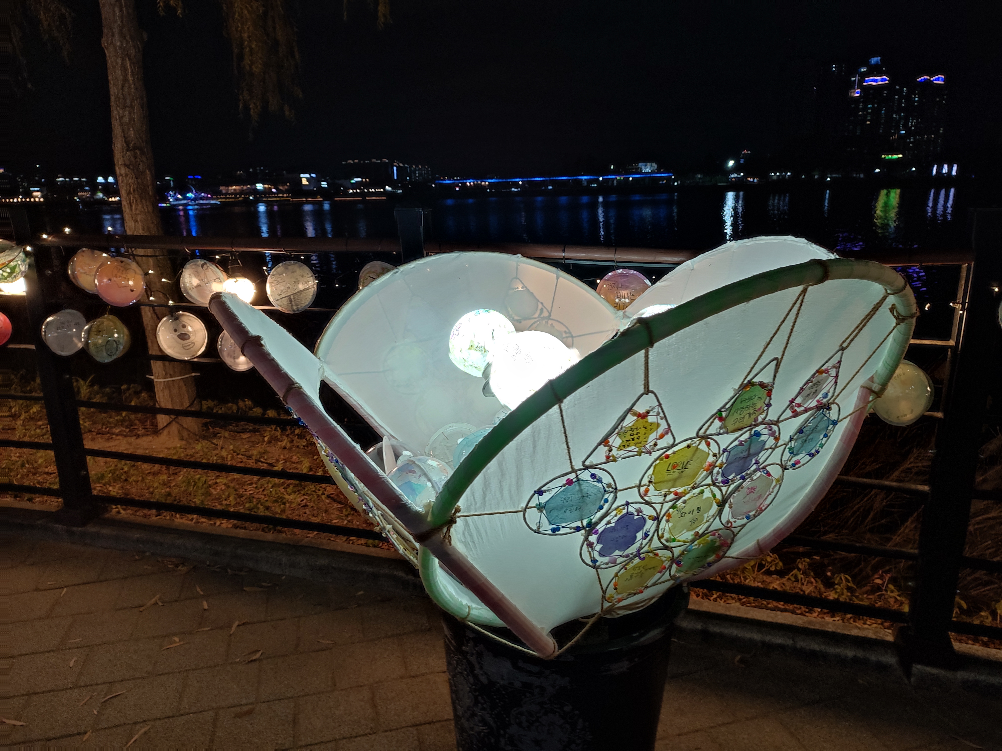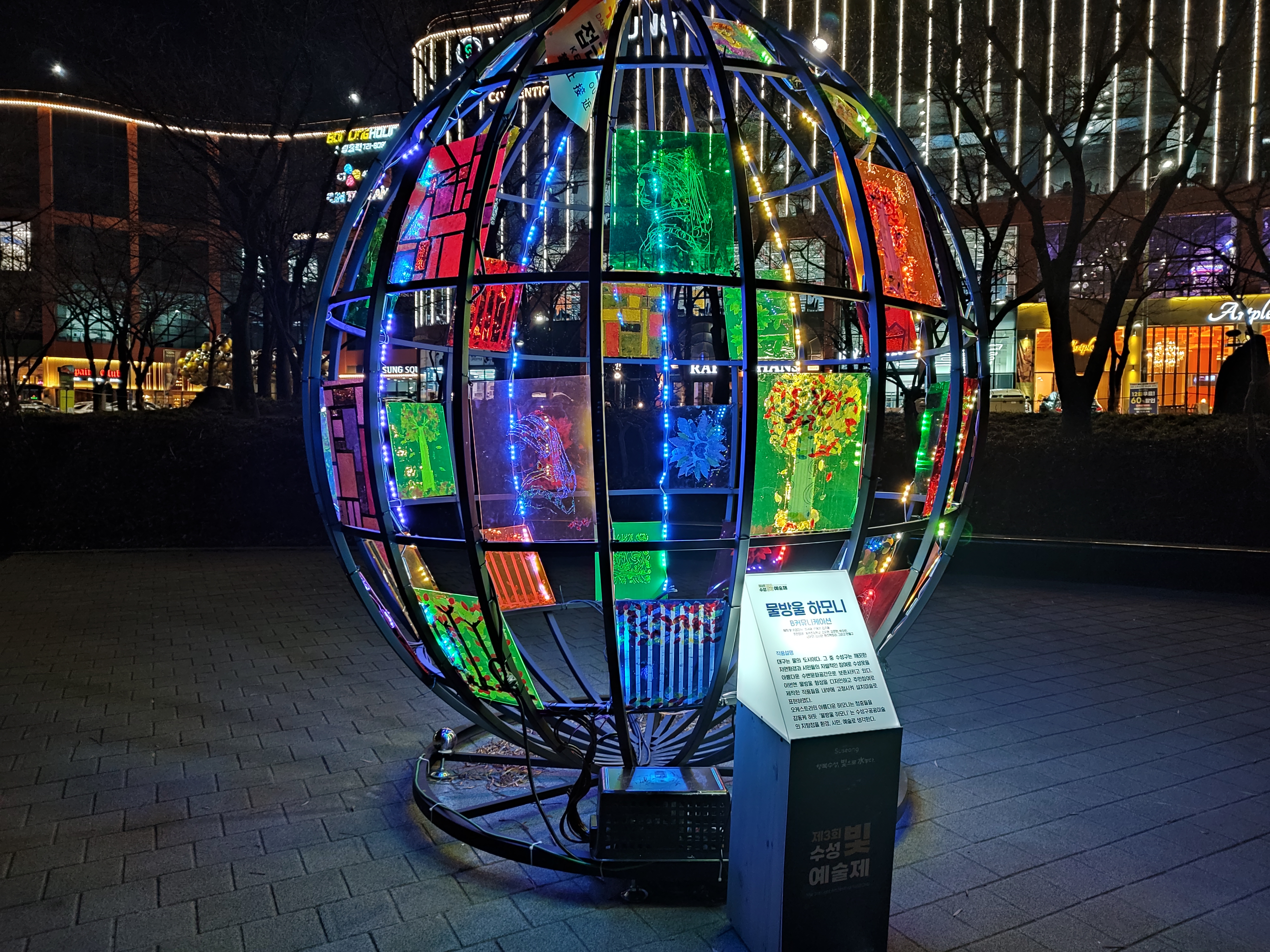 하늘에 떠 있는 조형물에도 빛이 들어가 있네요.