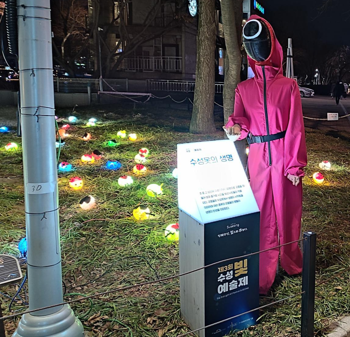 수성못 빛축제에도 오징어 게임의 캐릭터가 등장을 했네요.