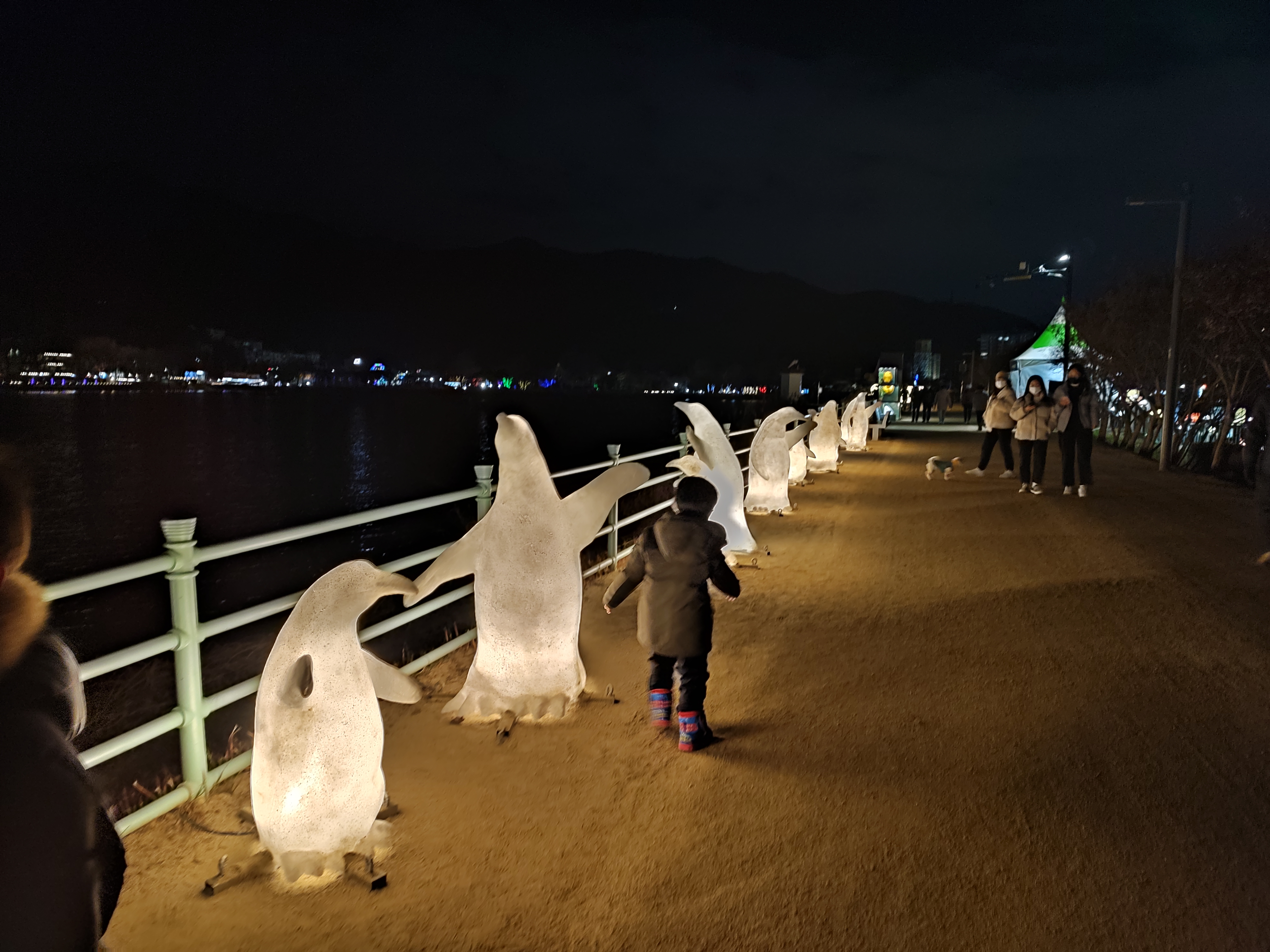 사진 찍지 참 좋은 것 같은데 사진을 찍어 보니 팽귄들 불이 밝아서인지 사람 얼굴은 잘 안 나오네요.