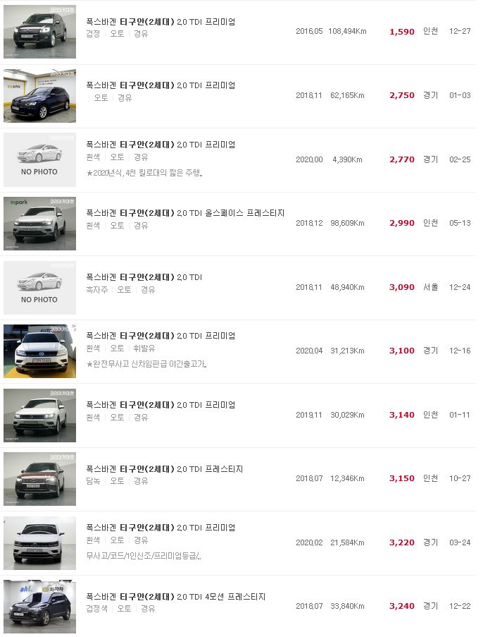 1,590만원에 판매되고 있는 차량도 보이나 티구안 2세대가 아니고 뉴티구안이네요.