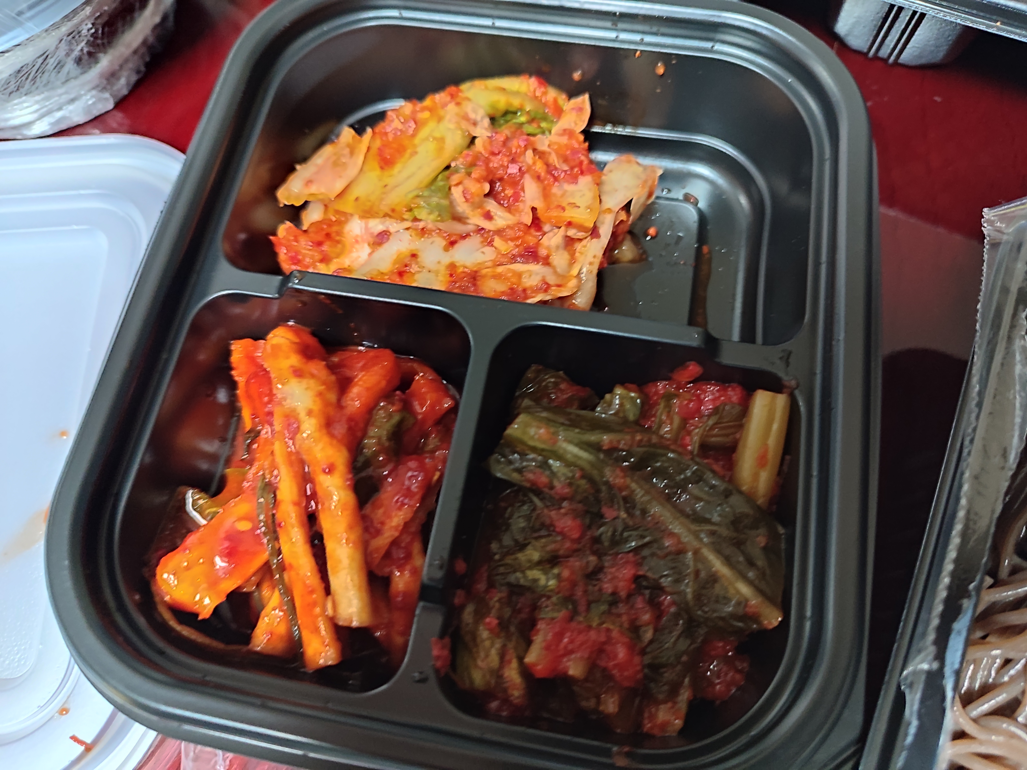 김치 3종류와 기타 소스들이 들어 있네요.