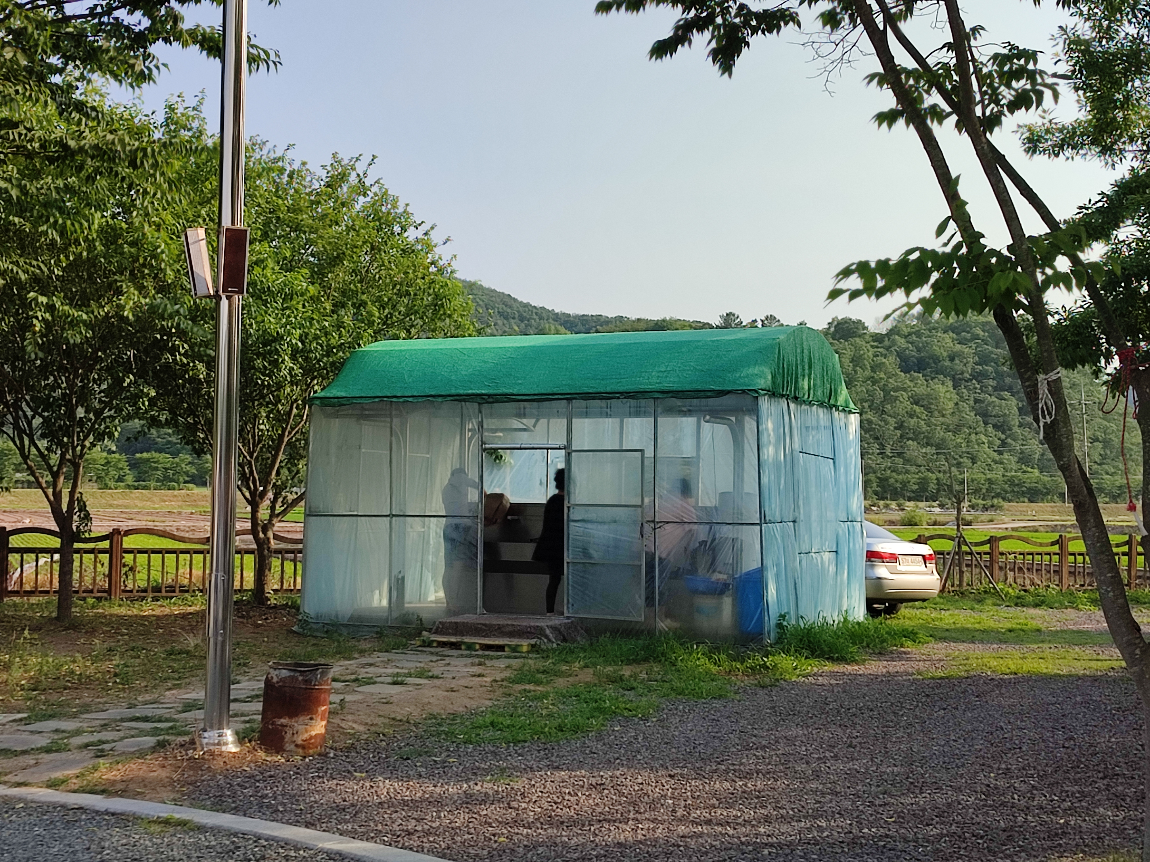 예전에 왔을적에는 그냥 오픈되어 있었는데 비바람을 막을 수 있도록 비닐로 업그레이드 되었습니다.