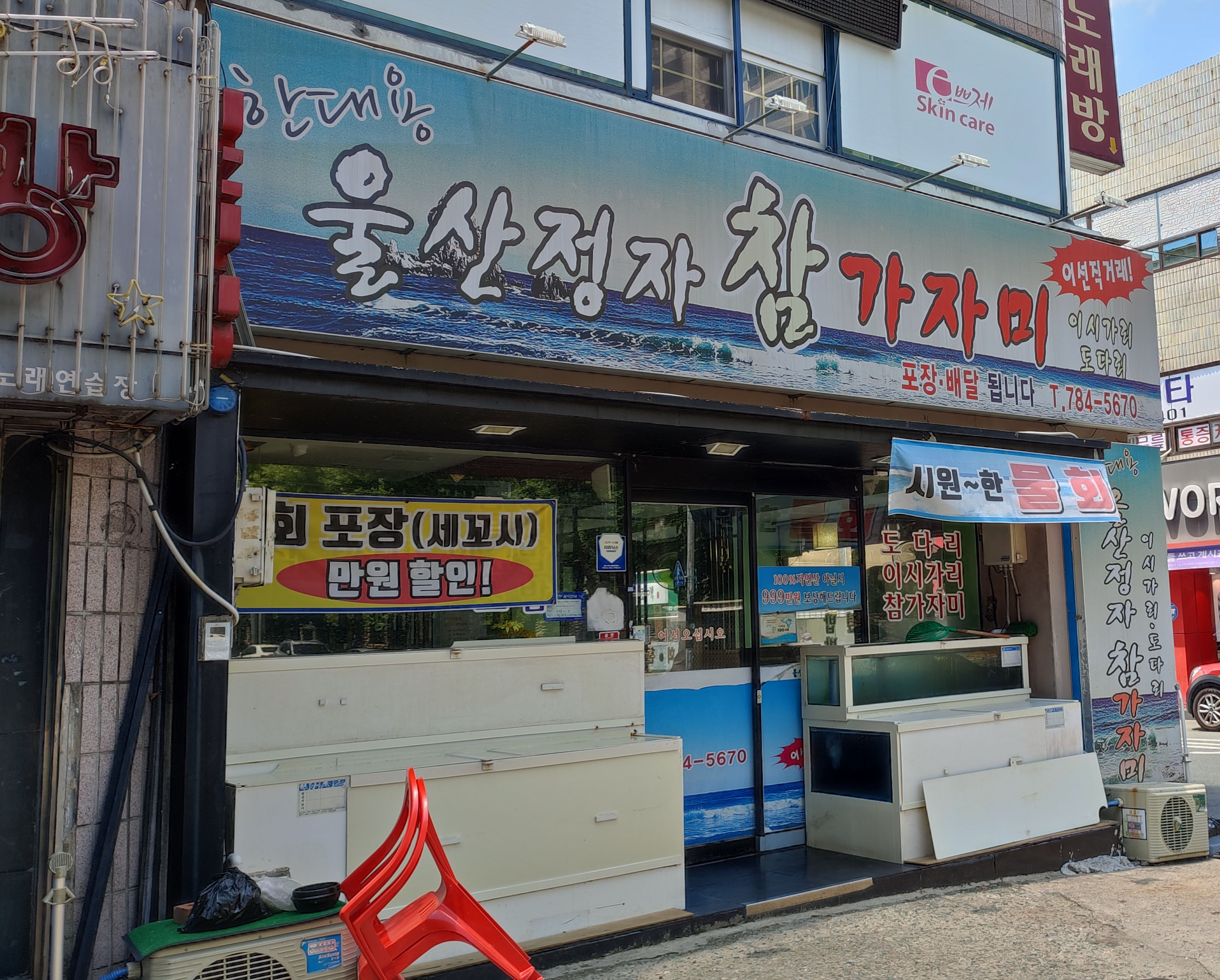 바로 지산청구타운과 동서아파트 사거리에 있는 한대용 울산정자 참가자미 횟집입니다.