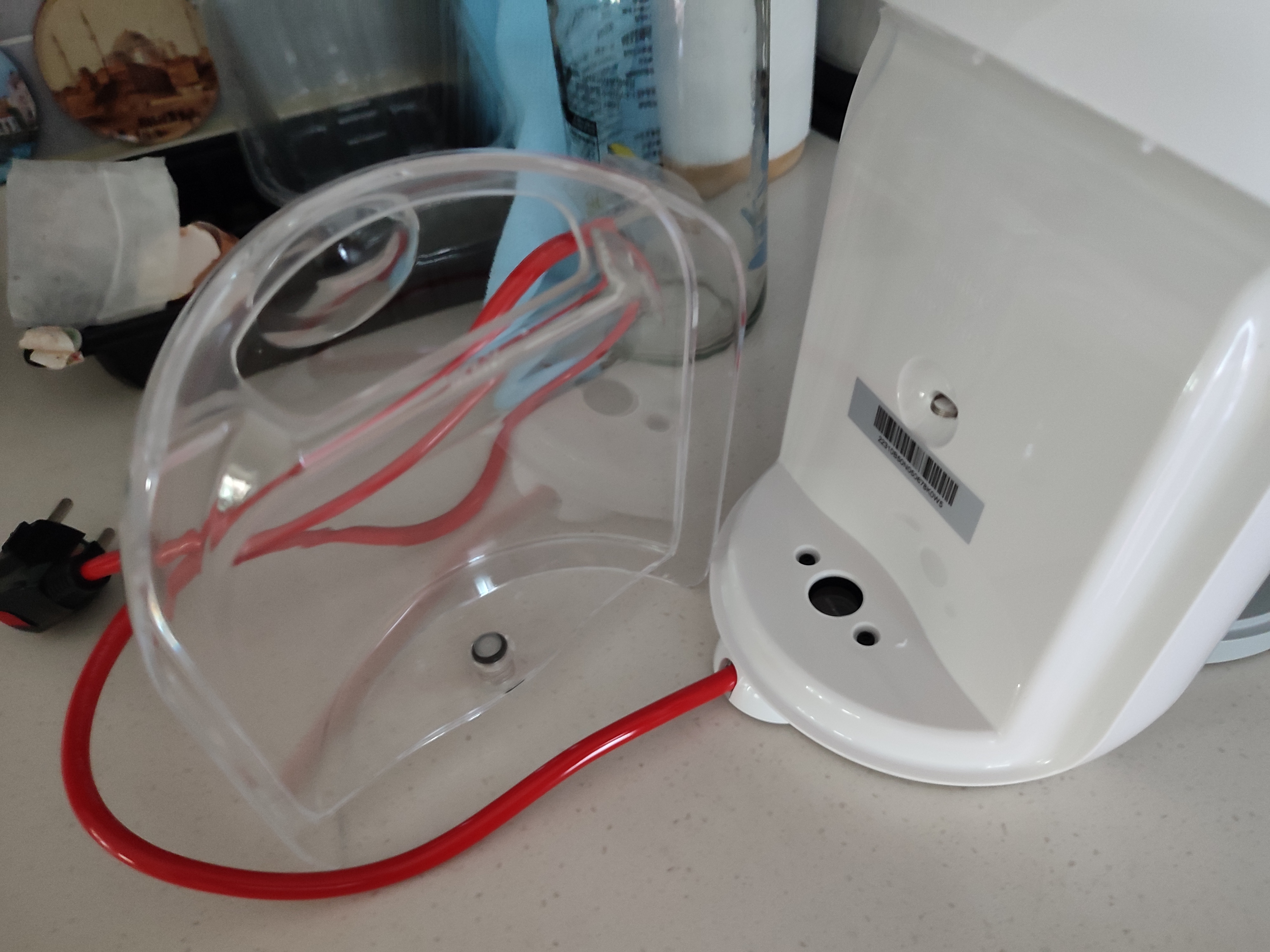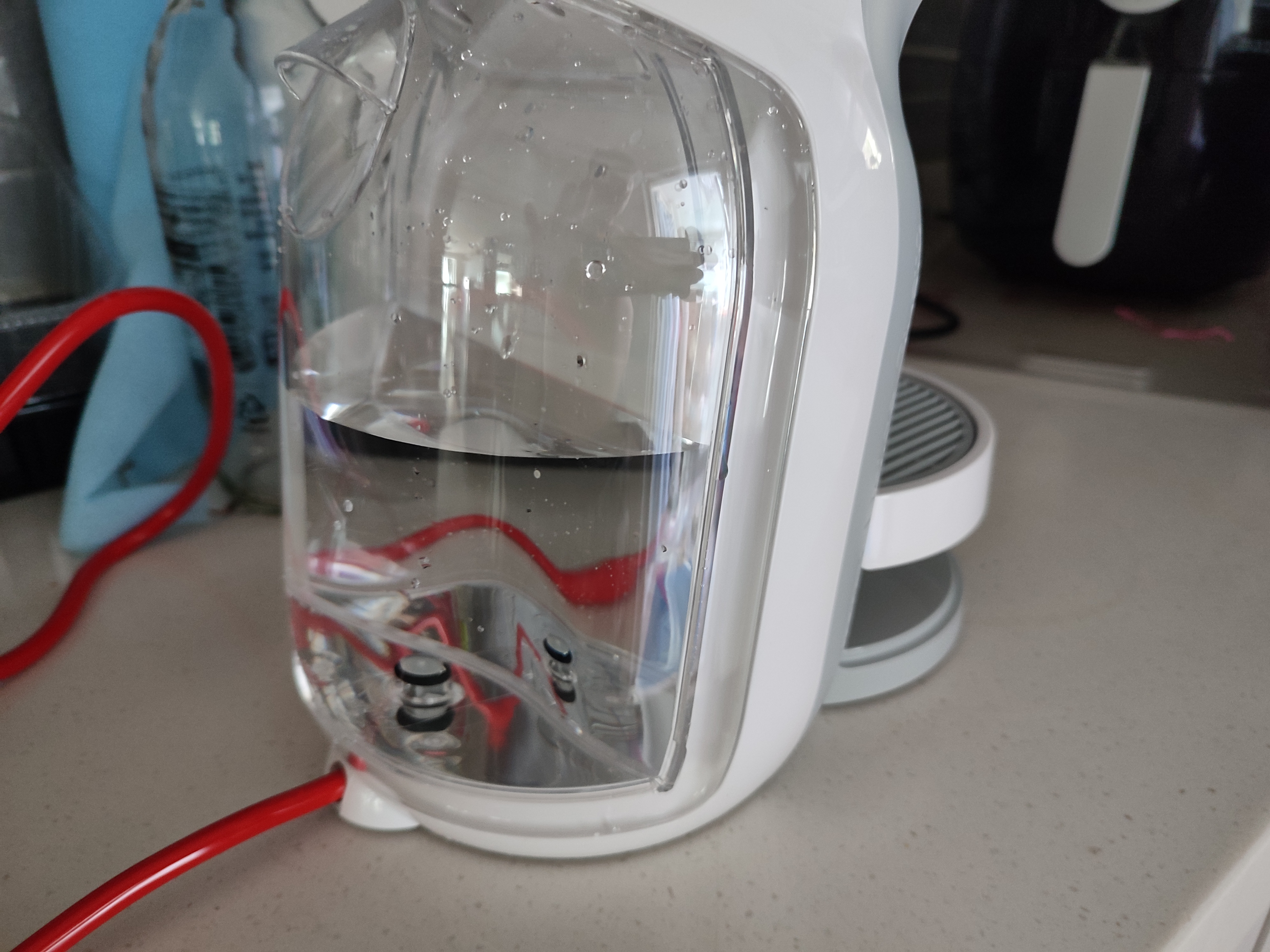 청소를 하기 위하여 물을 넣고 물통을 조립한 모습입니다.
