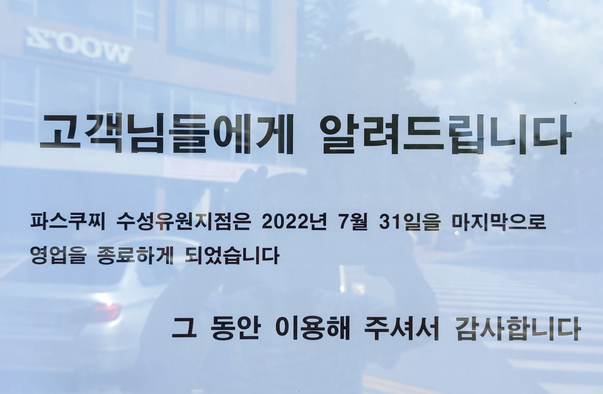그런데 파스쿠찌 수성유원지점은 2022년 7월 31일을 마지막으로 영업을 종료하게 되었다고 합니다.