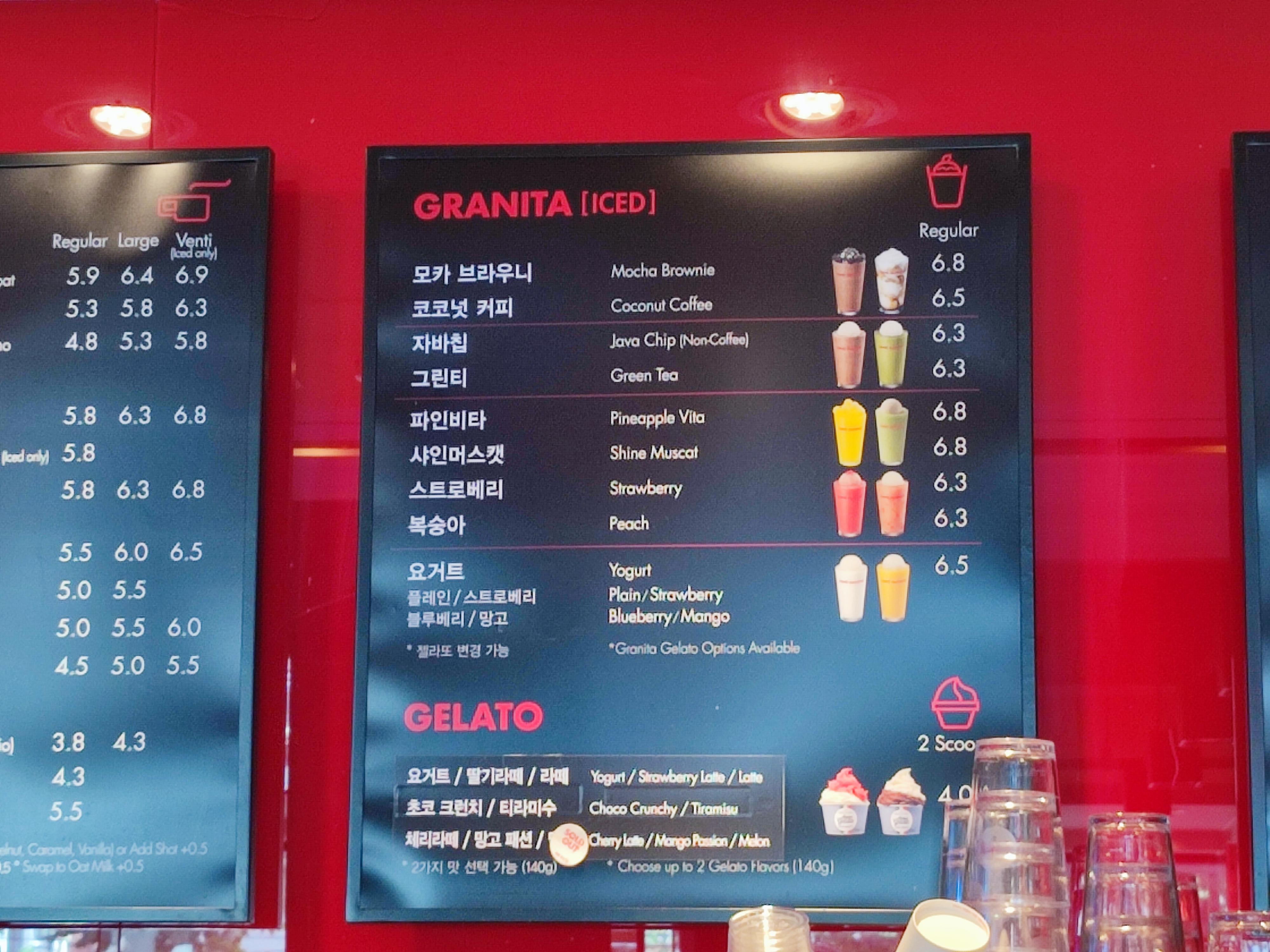 팥빙수를 안 먹는 둘째를 위하여 메뉴를 고르고 있는데 안 보인다고 하여 찍어 보여줬습니다.