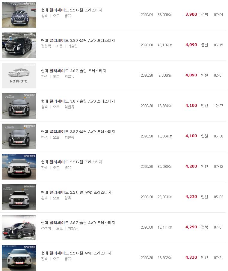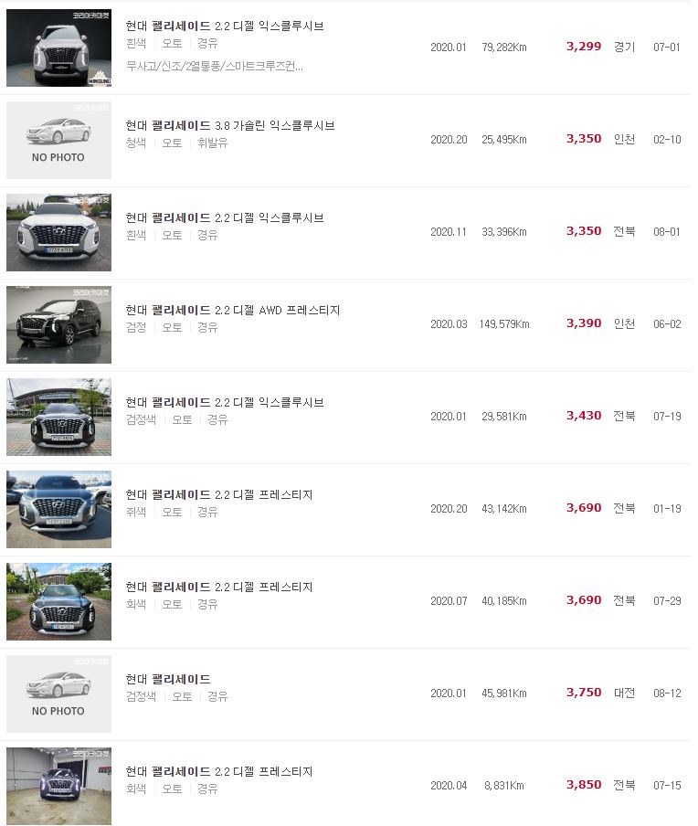 3150만원의 8만킬로 주행한 팰리세이드도 보이고 있습니다.