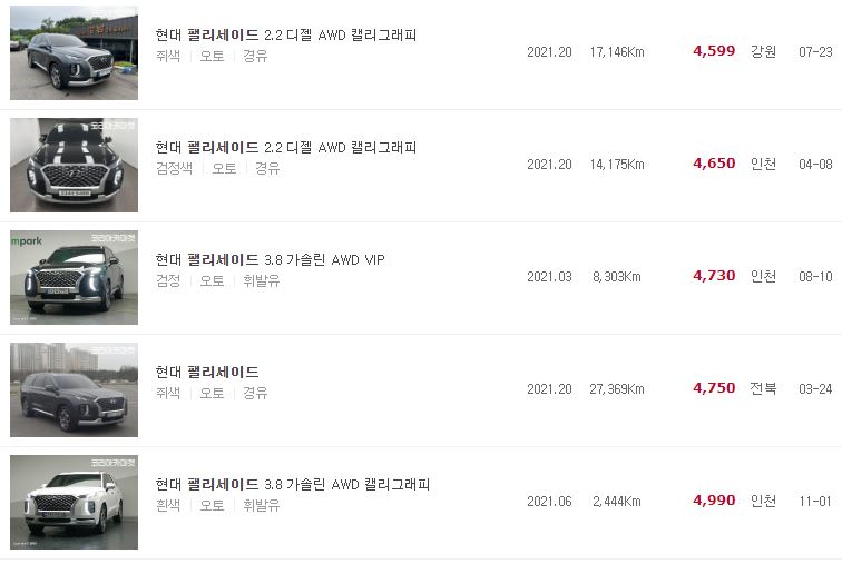 물론 제가 보는 중고차매매사이트에 한해서입니다.