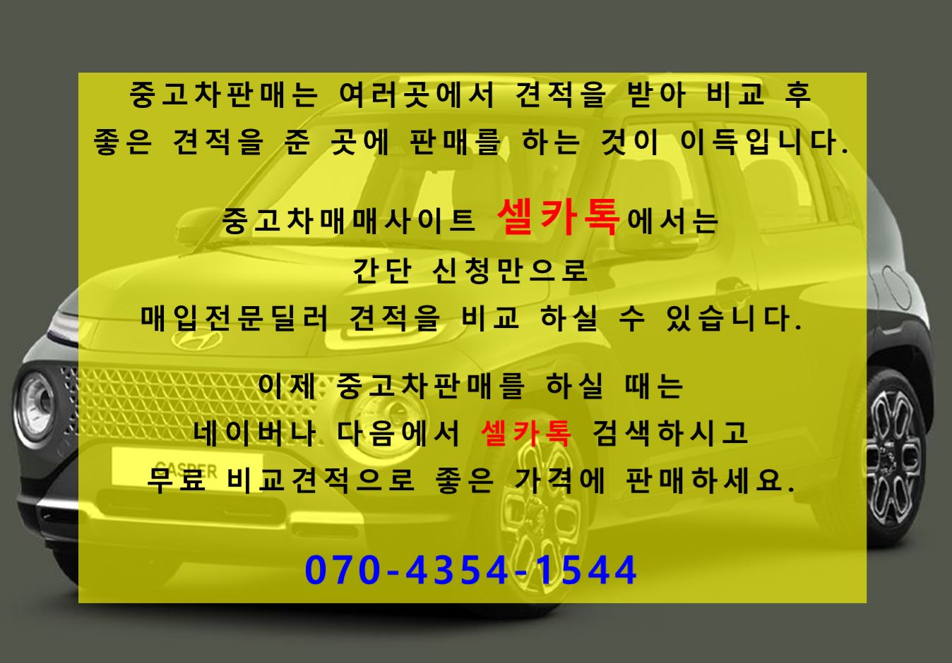 내차를 팔 때 받을 수 있는 금액이 얼마인지 궁금하시다면 중고차매매사이트 셀카톡의 무료 비교견적 받아 보세요.