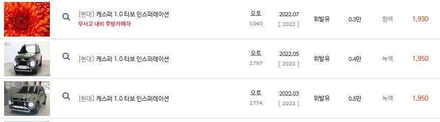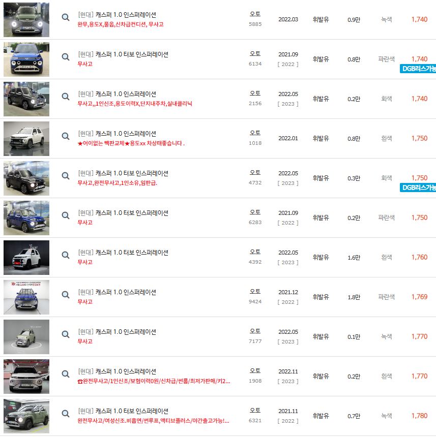 오늘은 캐스퍼의 중고차시세표를 알려드리겠습니다.