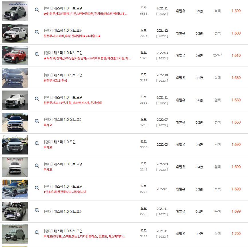 오늘은 믿을 수 있는 중고차매매사이트에서 캐스퍼의 중고차시세표를 알아보았습니다.