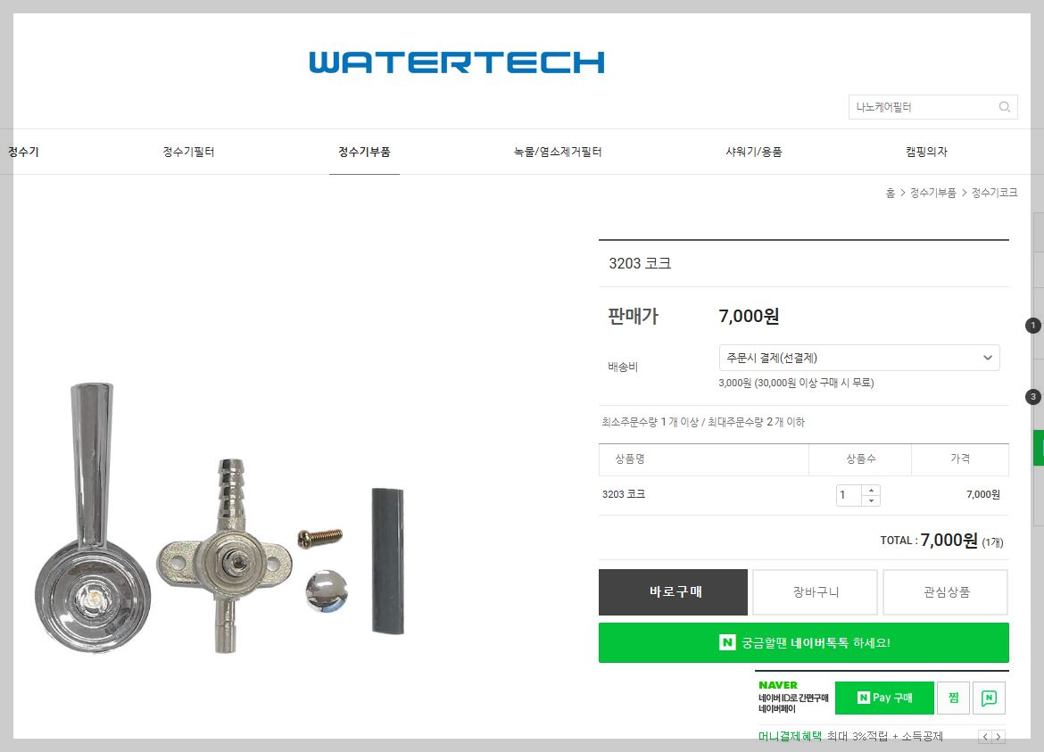 제품에 대한 부품구입이나 AS 등은 (주)워터텍에서 하더라구요.