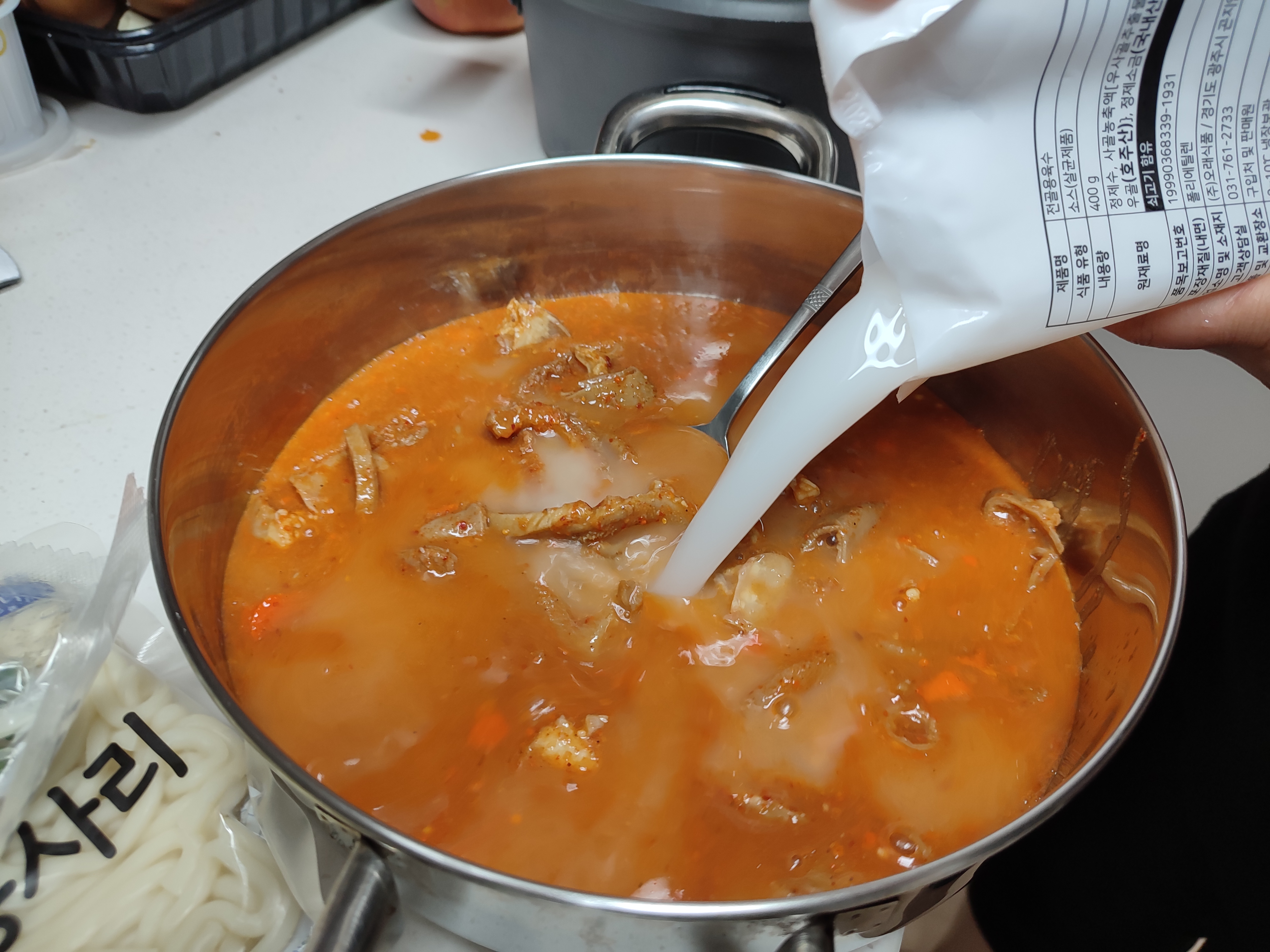 저희는 김치, 가래떡, 순대를 추가로 넣기 위하여 물을 조금 더 추가를 하였습니다.