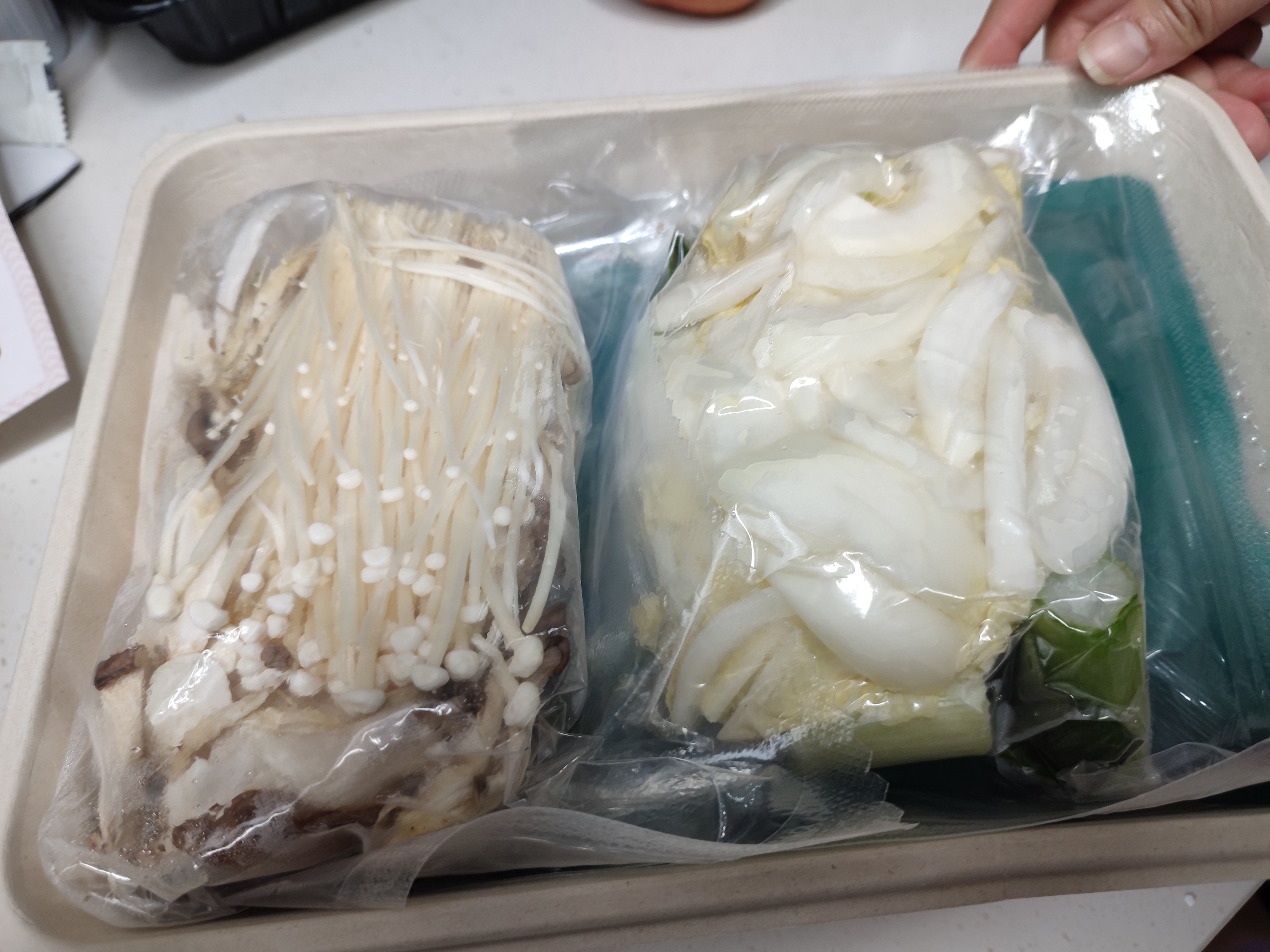 밀키트를 뜯으니 위와 같이 위에 야채들이 있고 하단에 전골재료와 육수가 들어 있습니다.