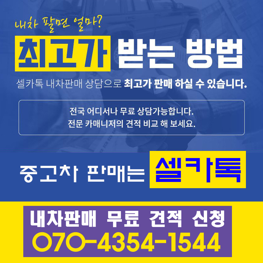 소중하게 타신 차량 셀카톡 무료견적신청으로 좋은 가격으로 안전하고 편안하게 판매하시기 바랍니다.