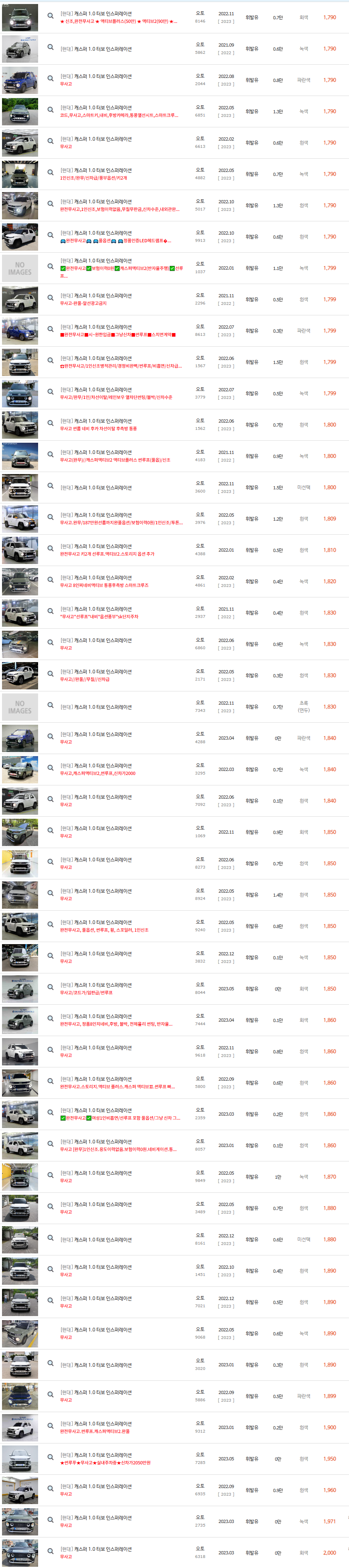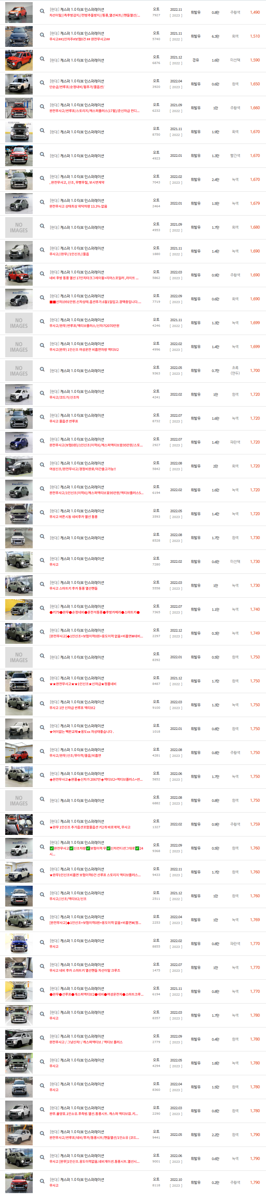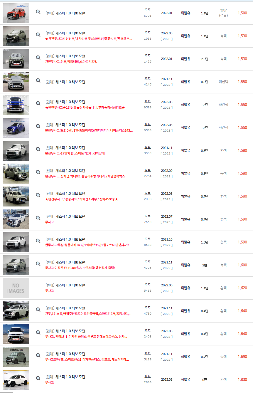 그럼 현재 중고차매매사이트에서 판매되고 있는 캐스퍼의 중고차시세를 알아보겠습니다.
