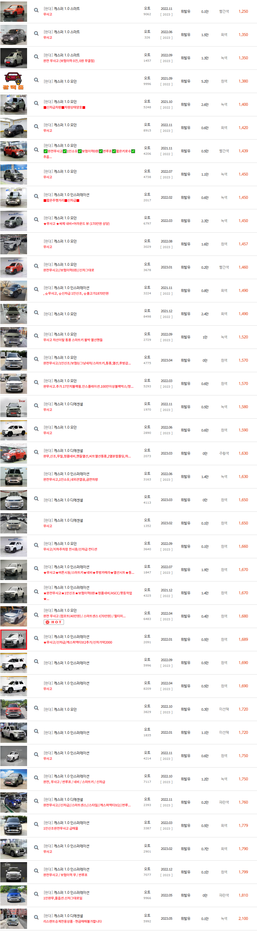 캐스퍼 1.0 터보 모던 트림의 중고차 리스트가 되겠습니다.