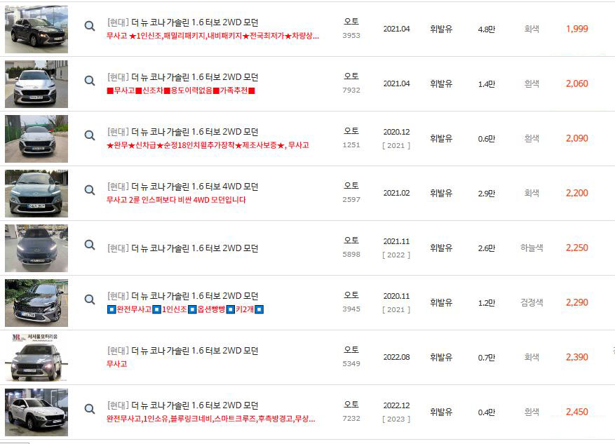 위에서 더뉴 코나의 중고차시세를 알아보았는데요.