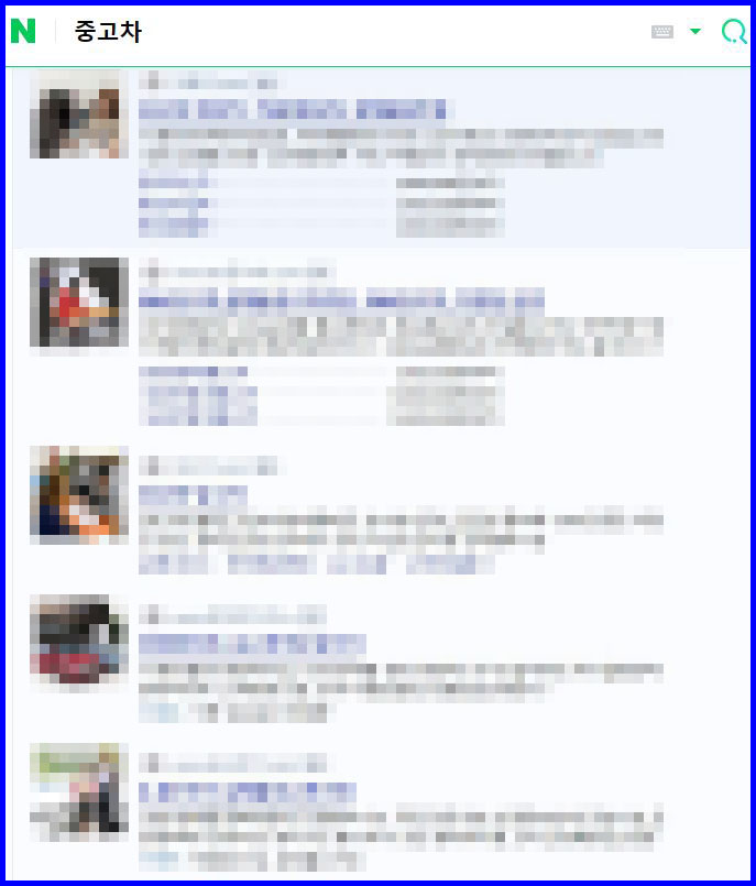 위의 사진은 네이버에서 중고차를 검색한 화면입니다.