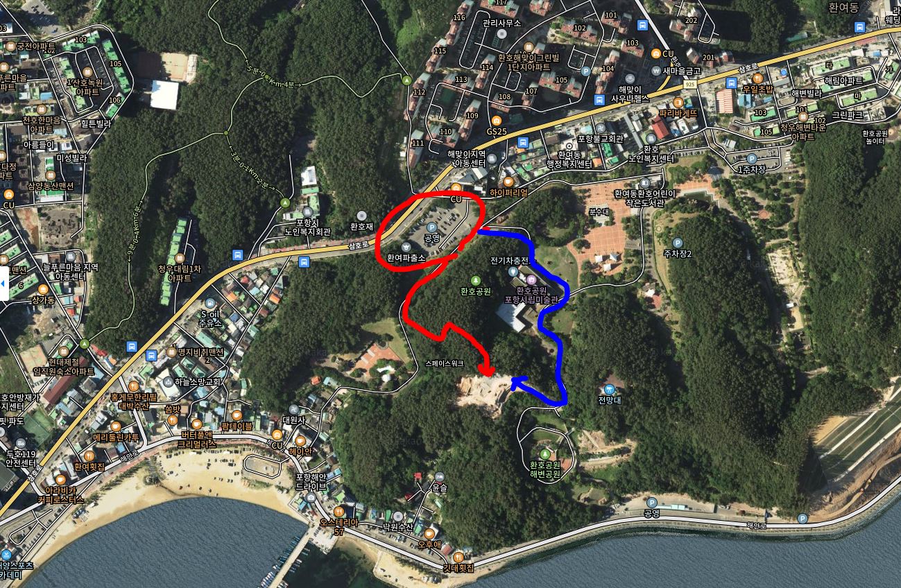 환호 공원은 영일대 해수욕장 끝쪽에 있기에 영일대 해수욕장 공영주차장에 주차를 하고 사부작히 걸어와도 될 듯 합니다.
