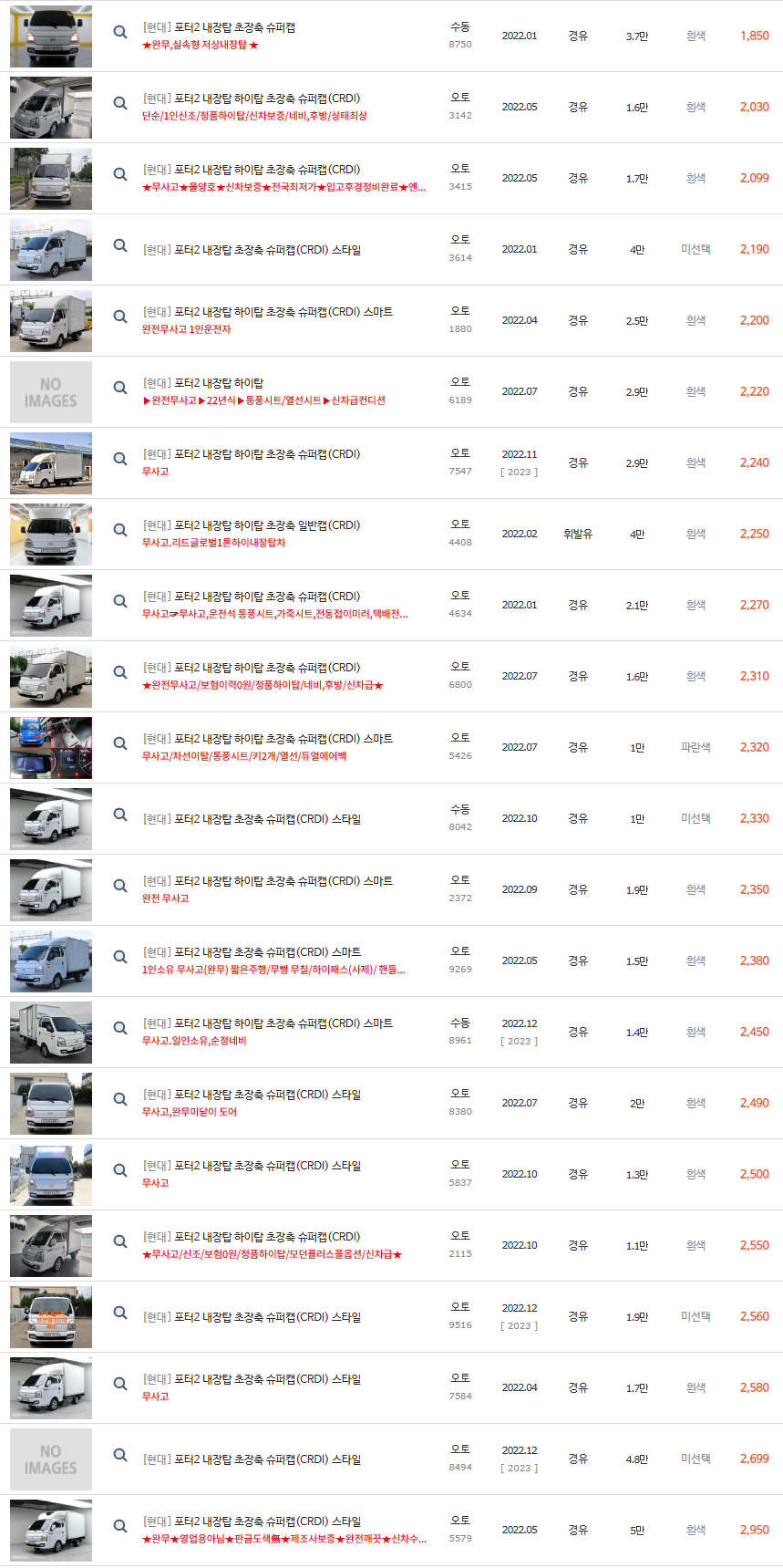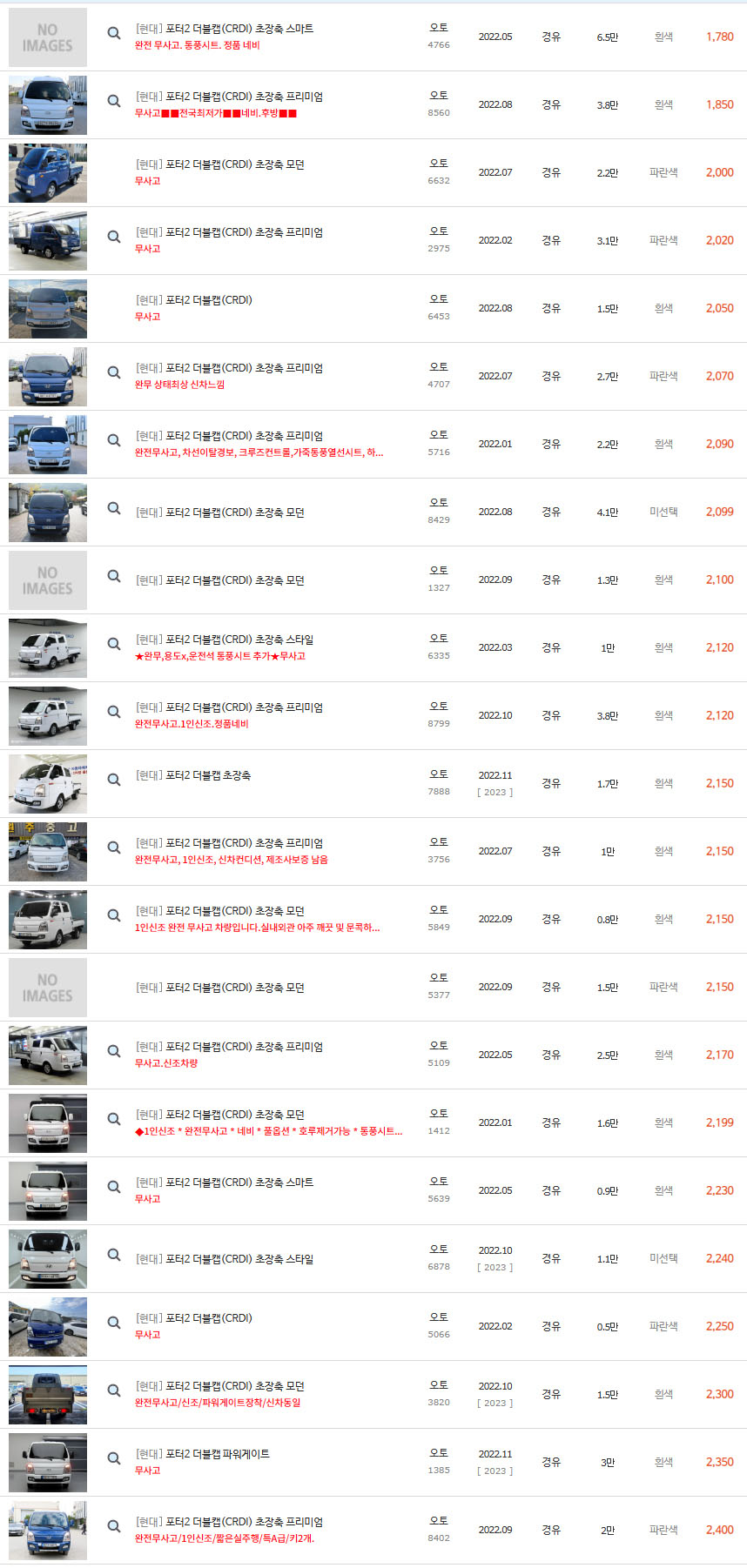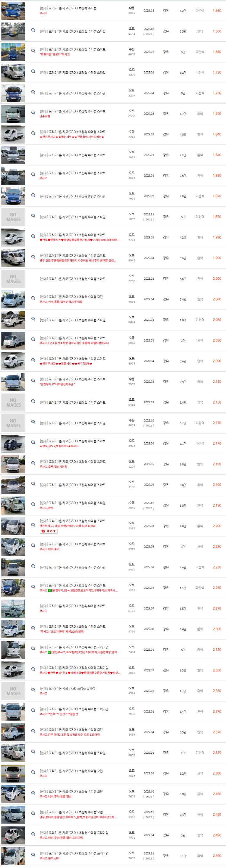 그럼 현재 중고차매매사이트에서 판매되고 있는 2022년식 포터2 중고차시세를 알아보도록 하겠습니다.
