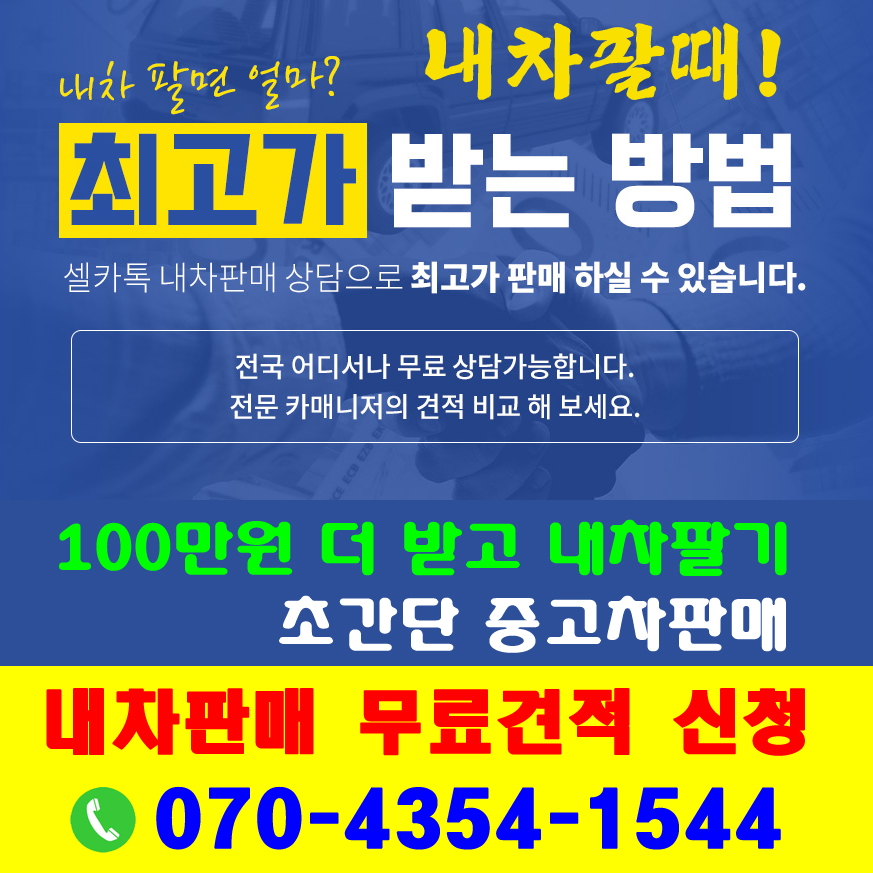소중하게 타신 내차를 좋은 가격에 빠르고 안전하게 판매를 하실 수 있도록 도와 드리도록 하겠습니다.