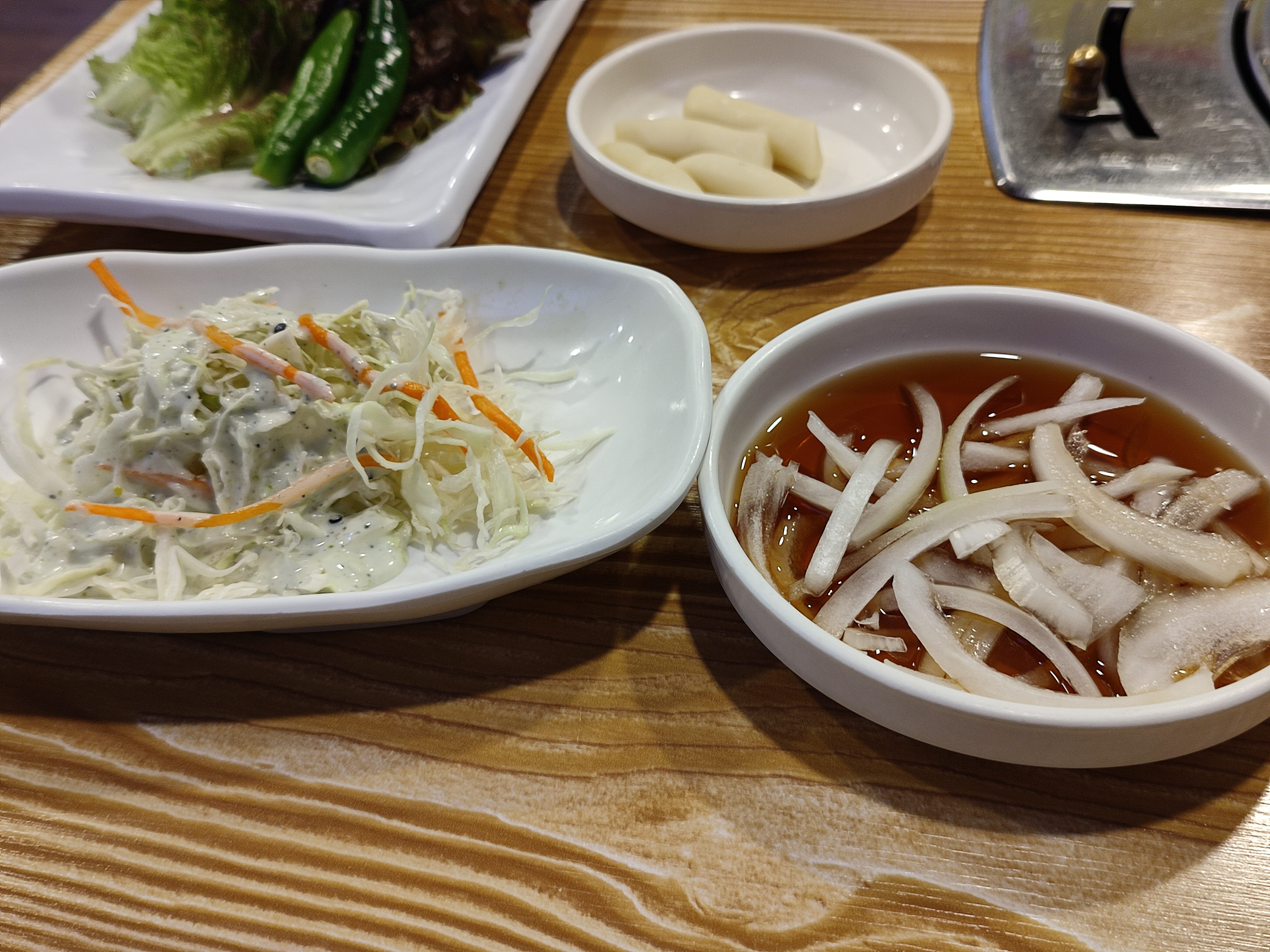 상추는 셀프로 가져오는 것인지 모르겠는데 이날은 테이블이 서너 테이블뿐이라 알바생에게 이야기하니 가져다주더라고요.