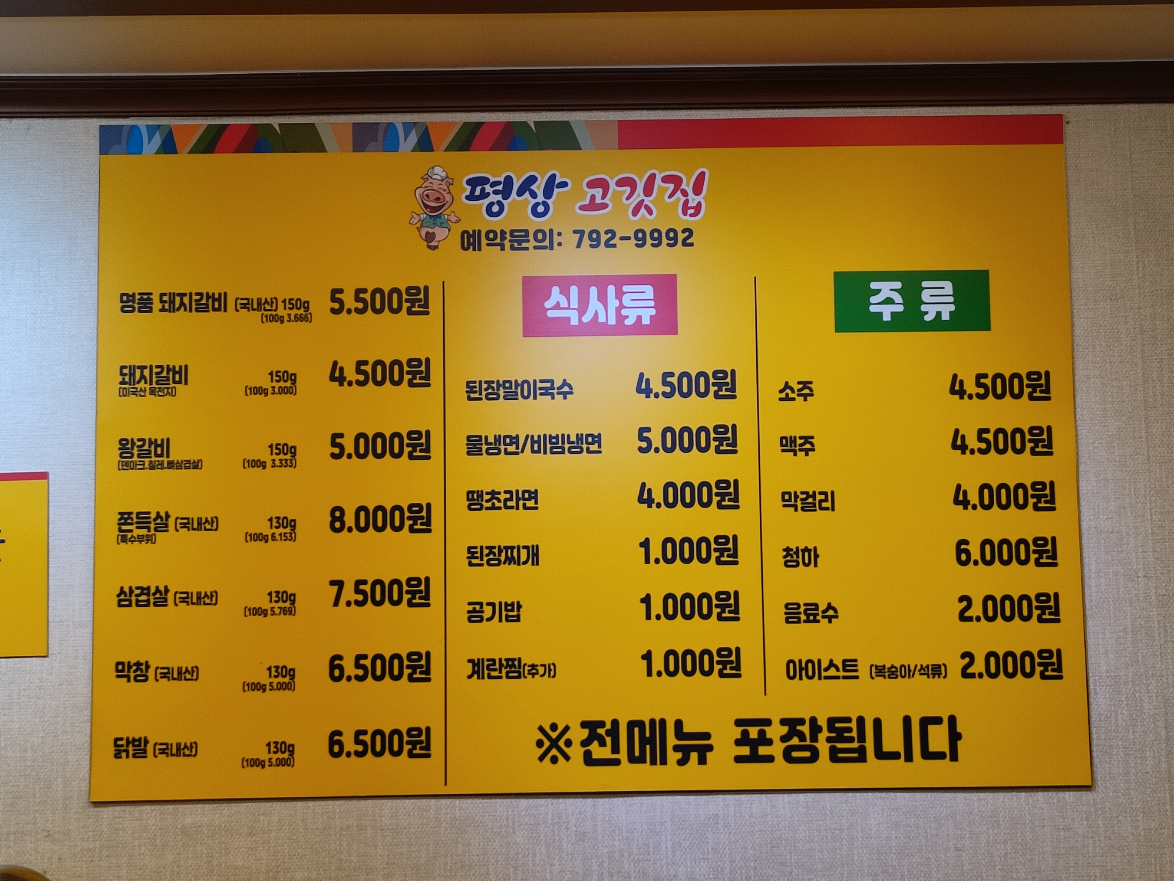 참고로 평상고깃집은 체인점인지 서부정류장 근처에도 있더라고요.