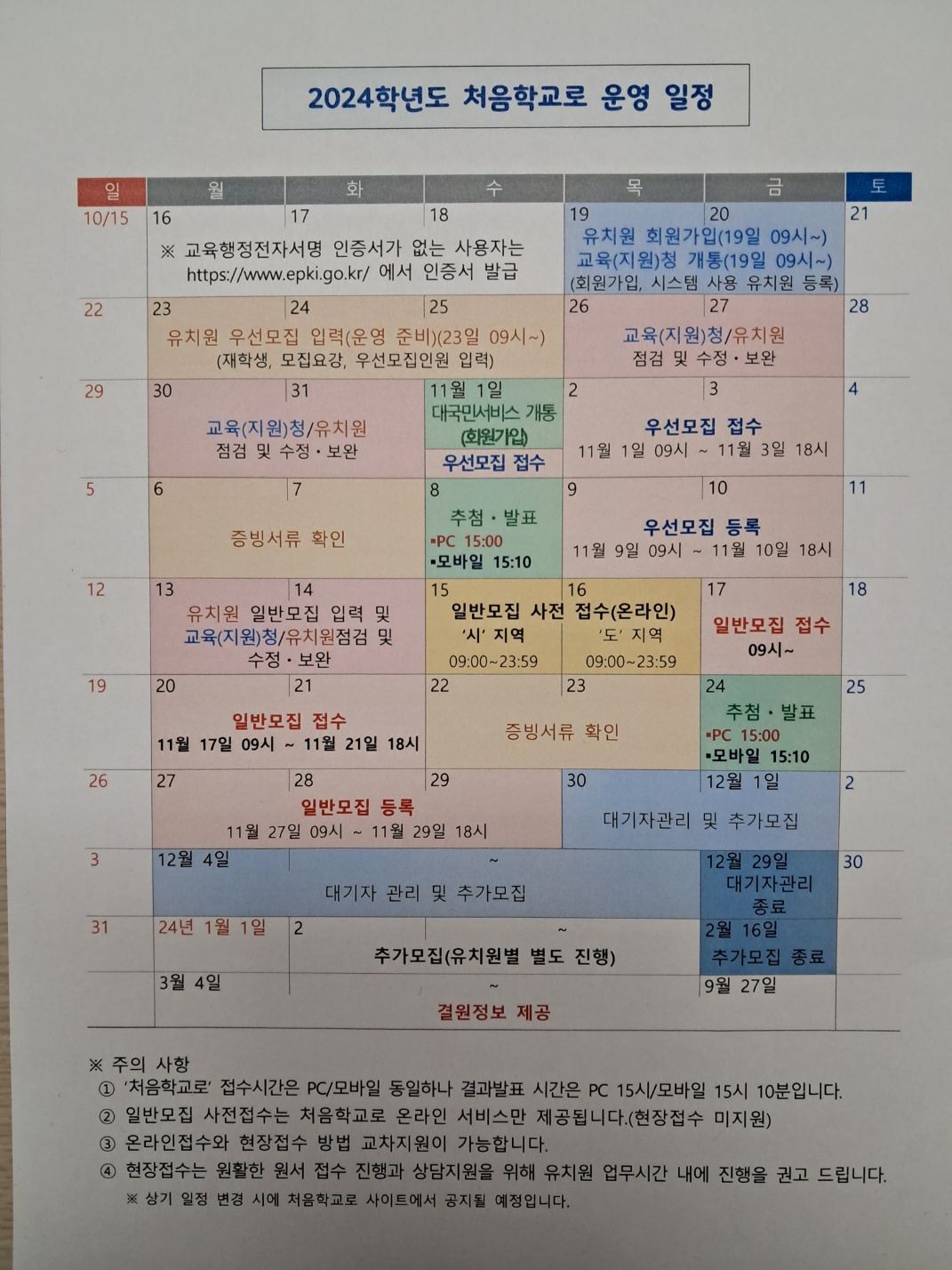 2024학년도 처음학교로 운영일정이라고 합니다.
