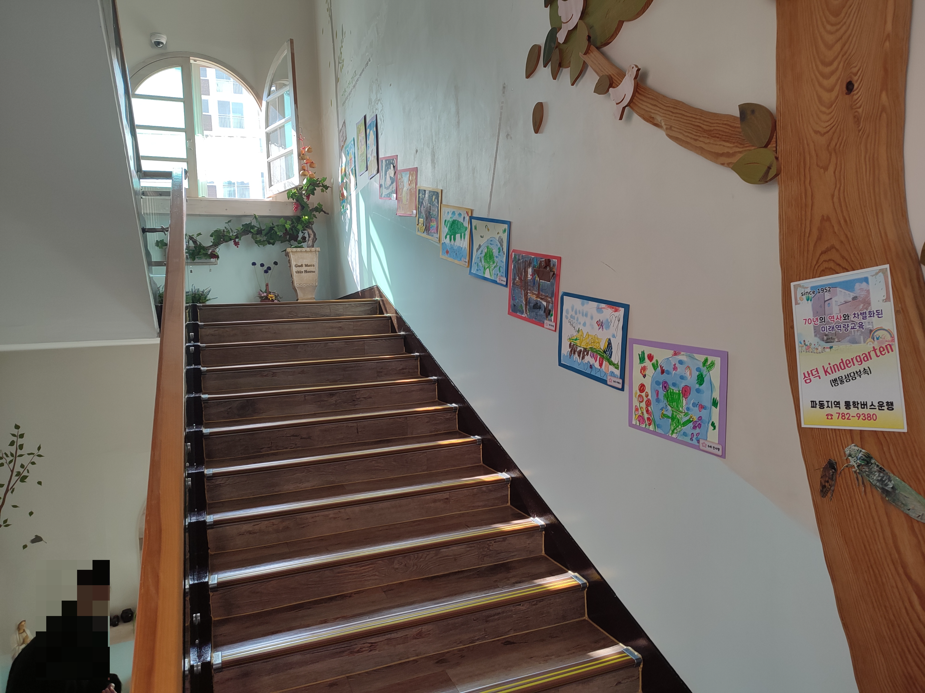 복도와 계단에도 아이들의 작품들과 교구들로 가득하네요.